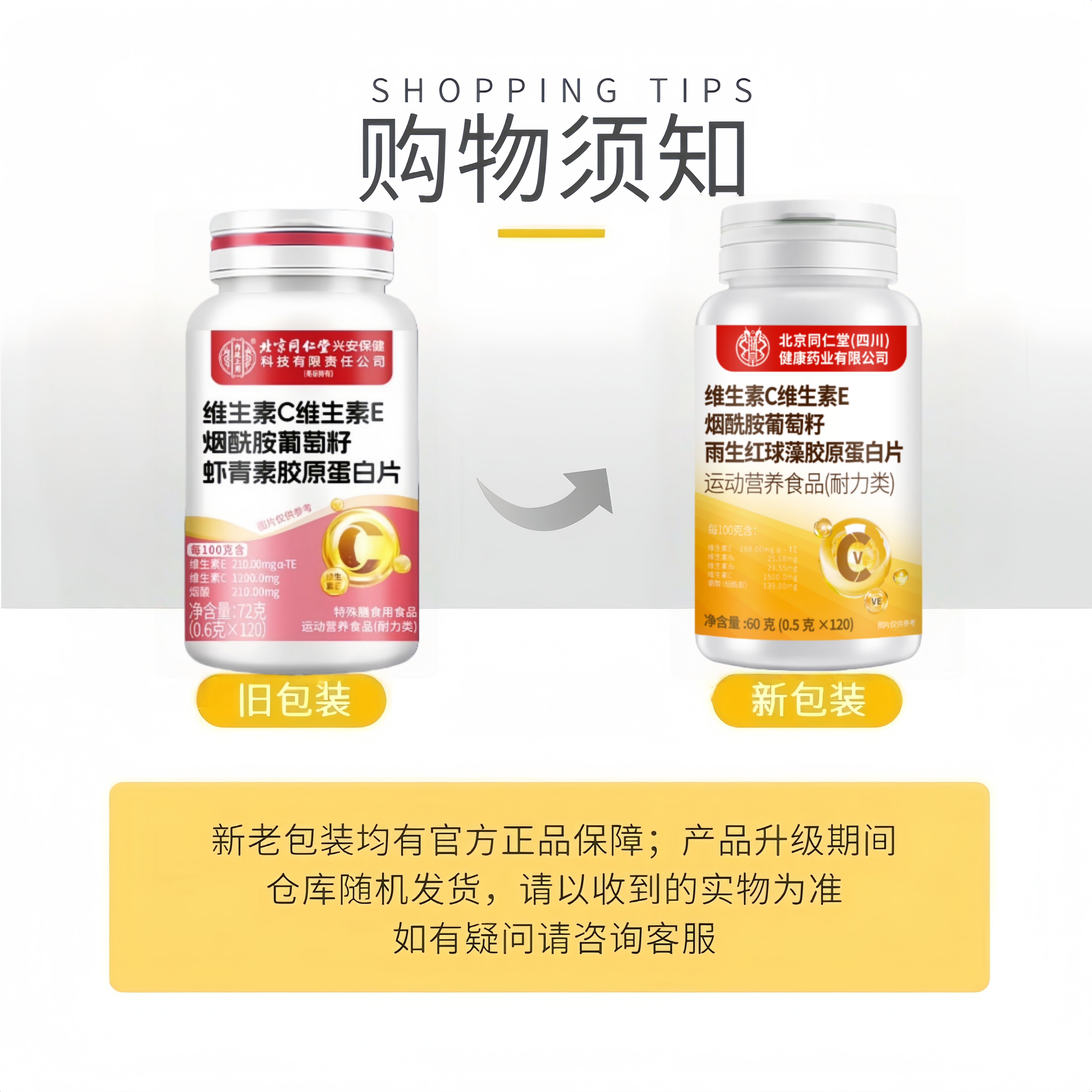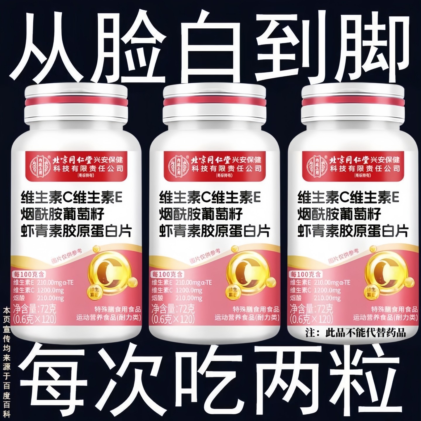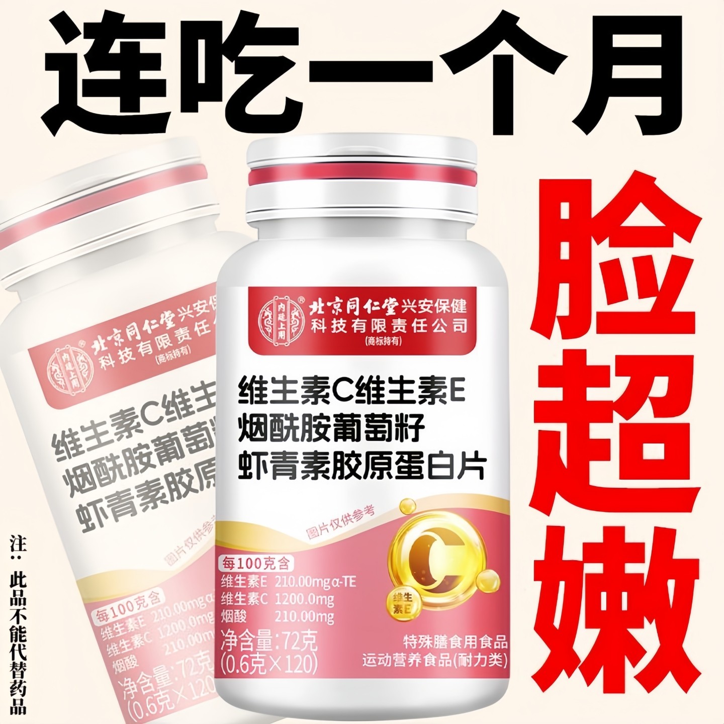 北京同仁堂维生素C+E烟酰胺葡萄籽虾青素胶原蛋白120片美白正品