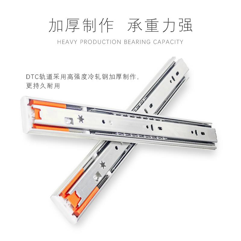 DTC东泰反弹抽屉轨道免拉手三节侧装静音按弹按压式滑道导轨滚珠