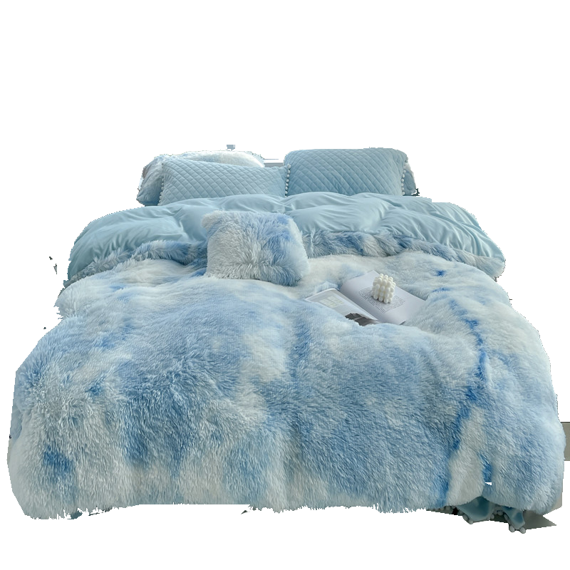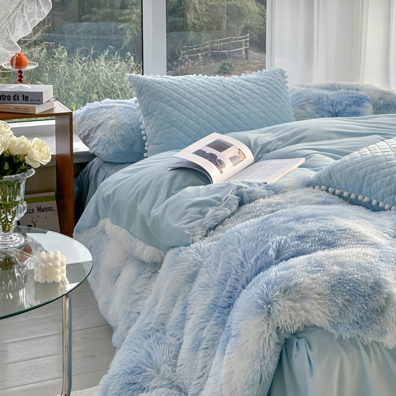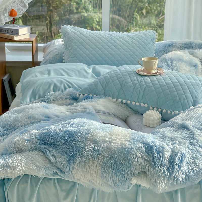 ins加厚水貂绒床上四件套珊瑚绒双面毛绒保暖夹棉床裙款被套冬季4