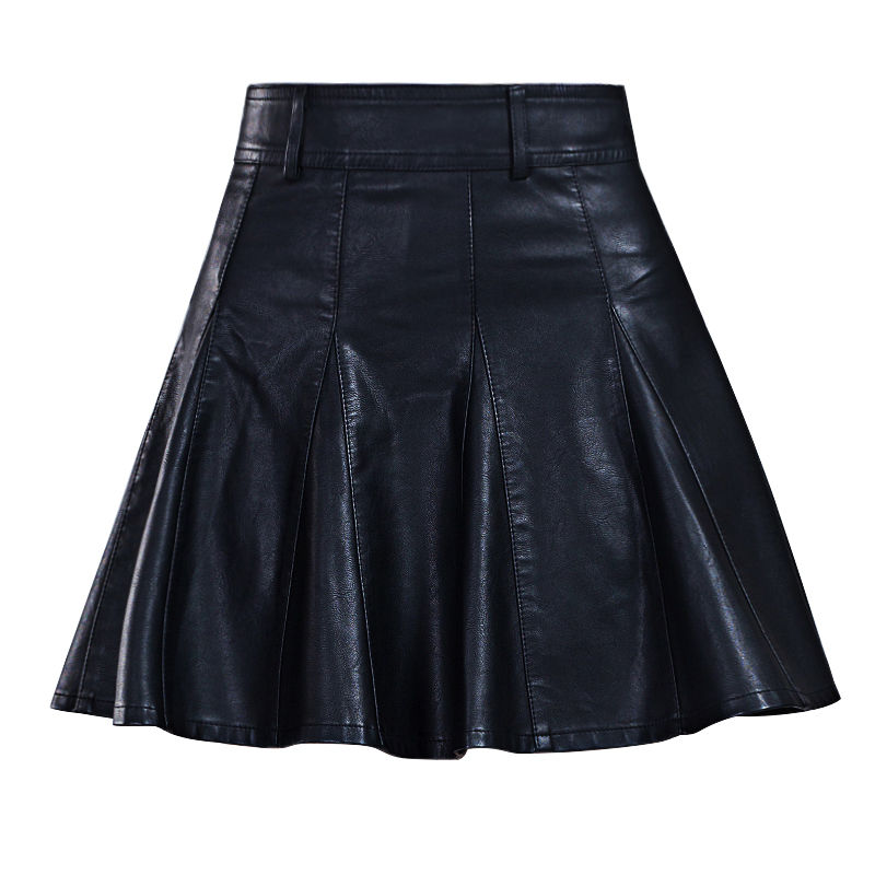 2023秋冬新款短裙子女装显瘦大码半身裙a字百褶PU皮裙防走光裤裙