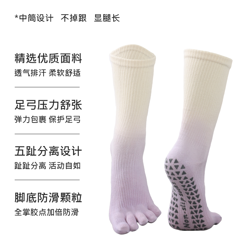 新品个性中筒防滑瑜伽袜女纯色棉五指袜运动防臭普拉提健身脚趾袜