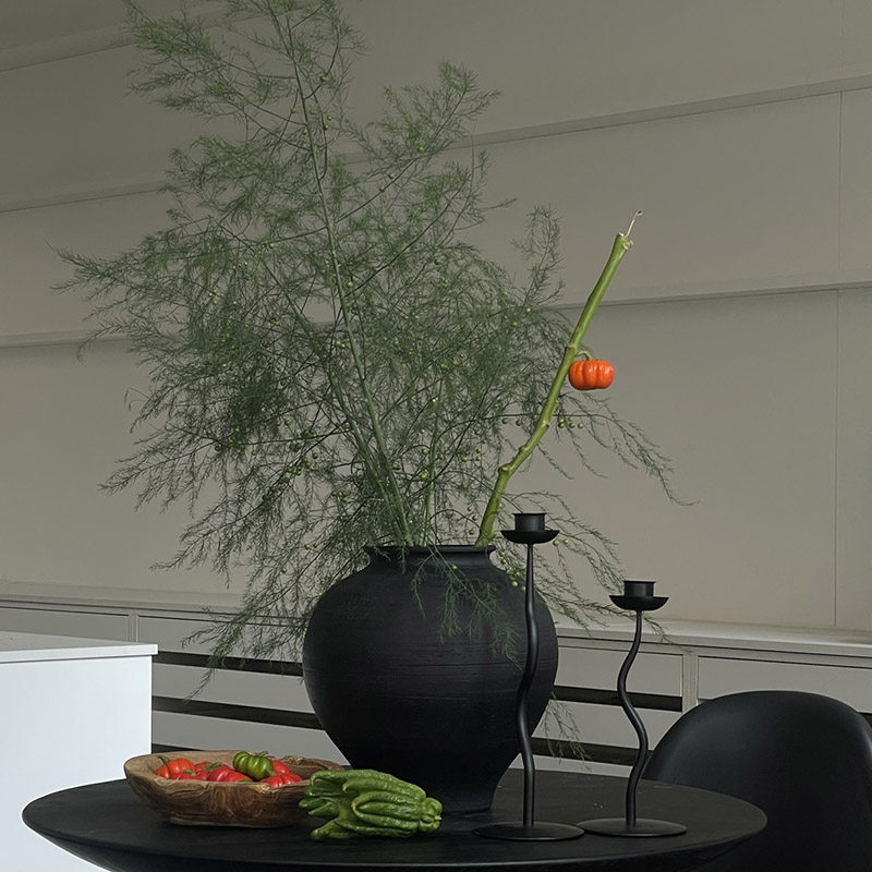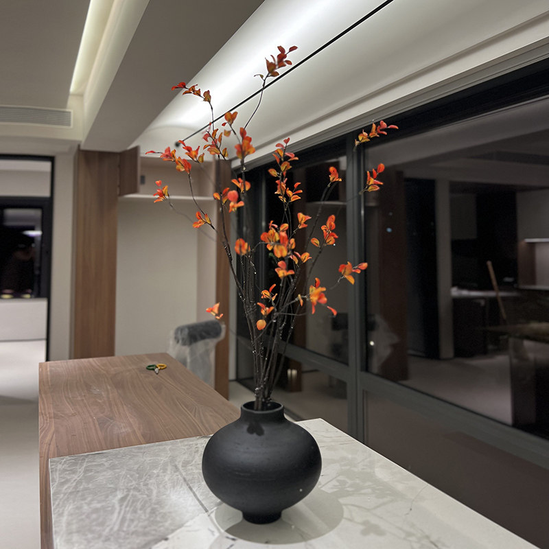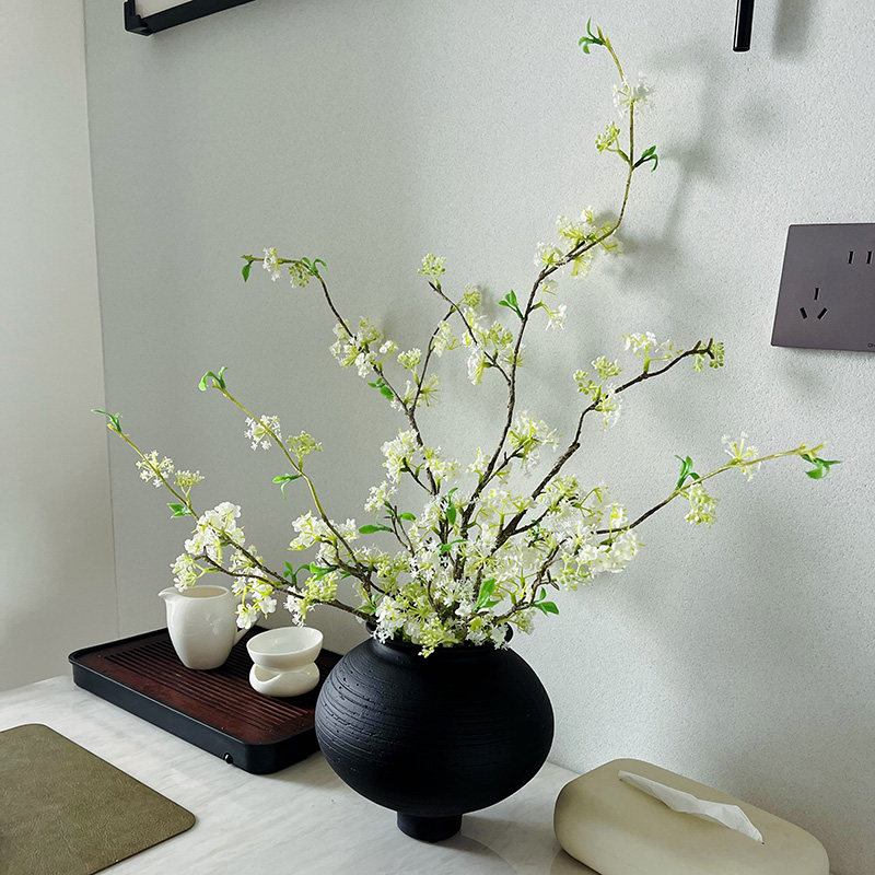 现代陶罐粗陶黑色罐子复古侘寂风花瓶摆件轻奢哑光中古花器装饰品