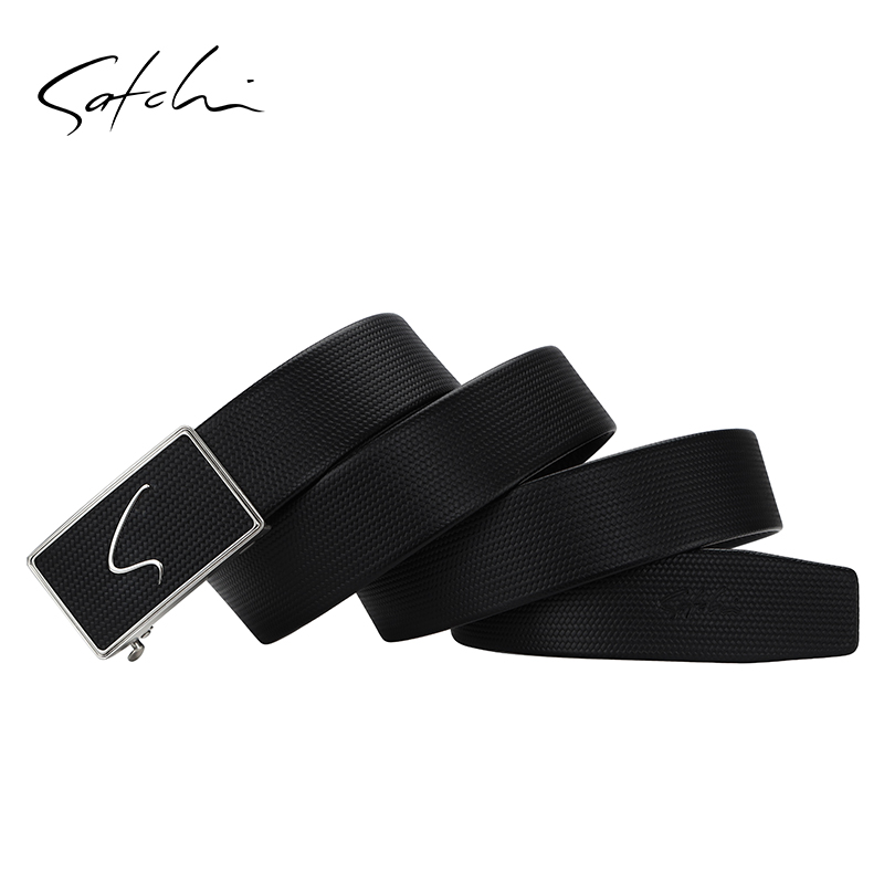 Satchi沙驰皮带男士真皮商务大气裤带时尚压花头层牛皮自动扣腰带