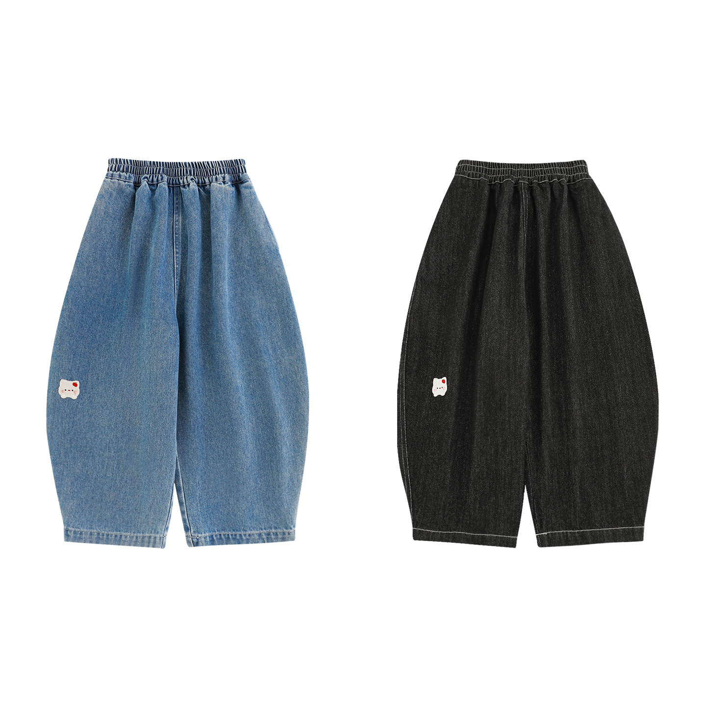 幼悠女童不易褪色猫咪牛仔裤2025秋季元气可爱亲肤柔软宽松裤子潮