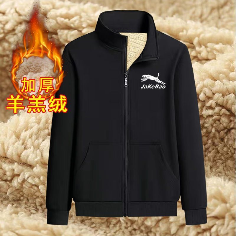 秋冬开衫卫衣男士加绒加厚立领卫衣休闲运动服大码羊羔绒男士外套