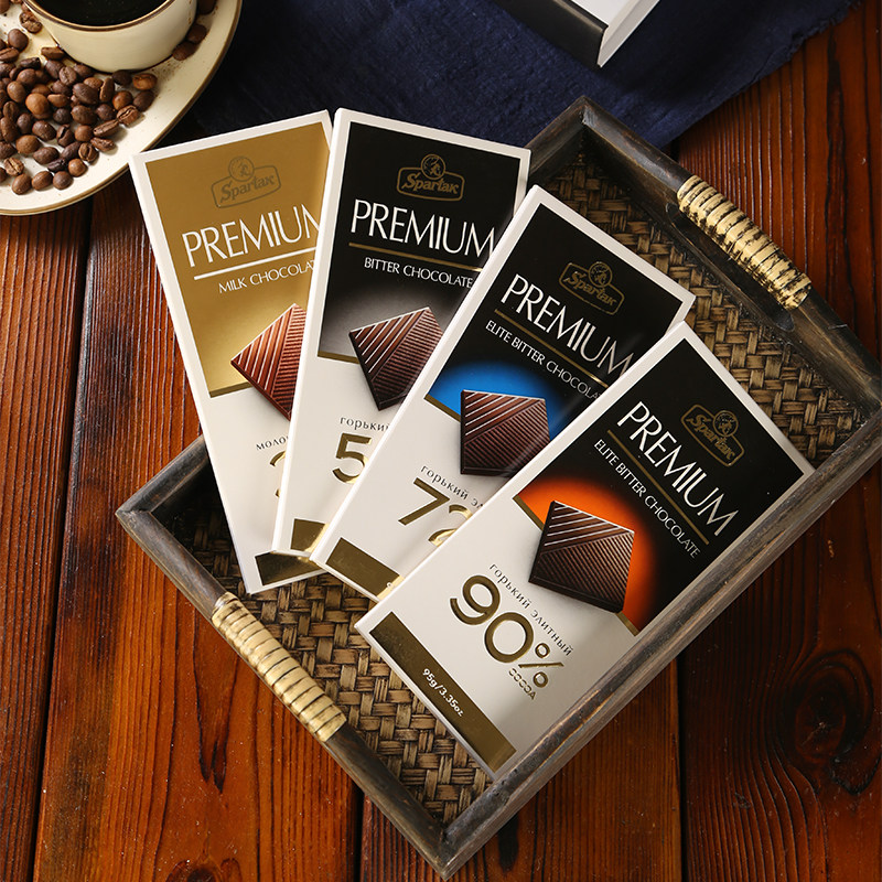 白俄罗斯原装进口斯巴达克纯可可脂黑巧克力板排块盒装健身代餐品