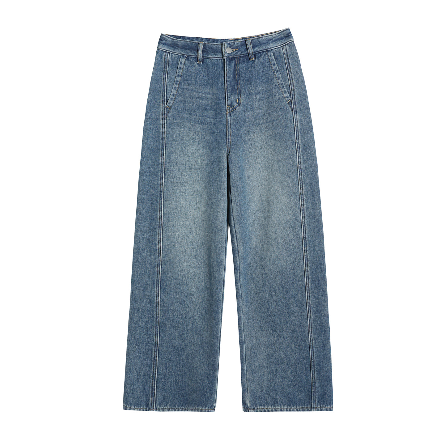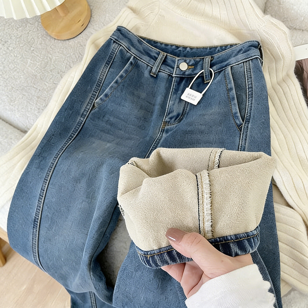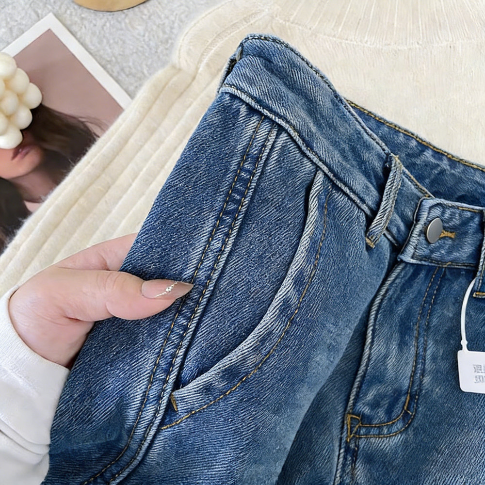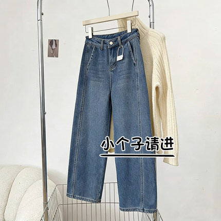 150小个子加绒牛仔裤女秋冬季新款八分显瘦高腰宽松阔腿弯刀裤子9