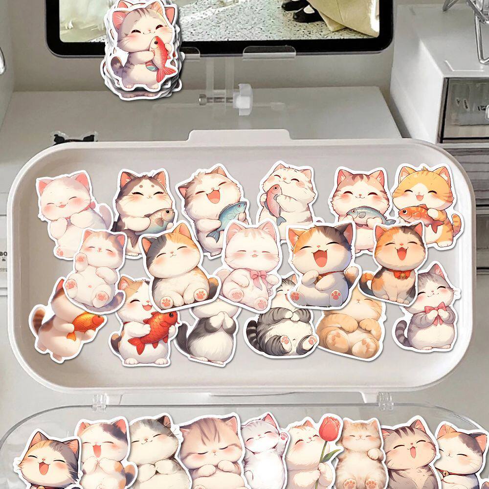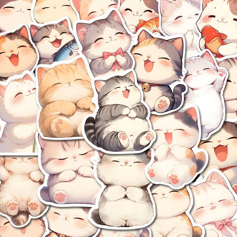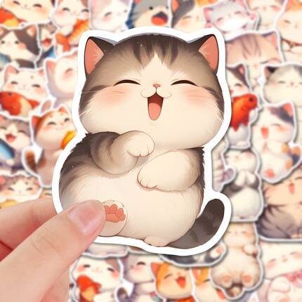 160张卡通喵喵团子贴纸ins超萌可爱猫猫手机笔记手账贴画防水diy