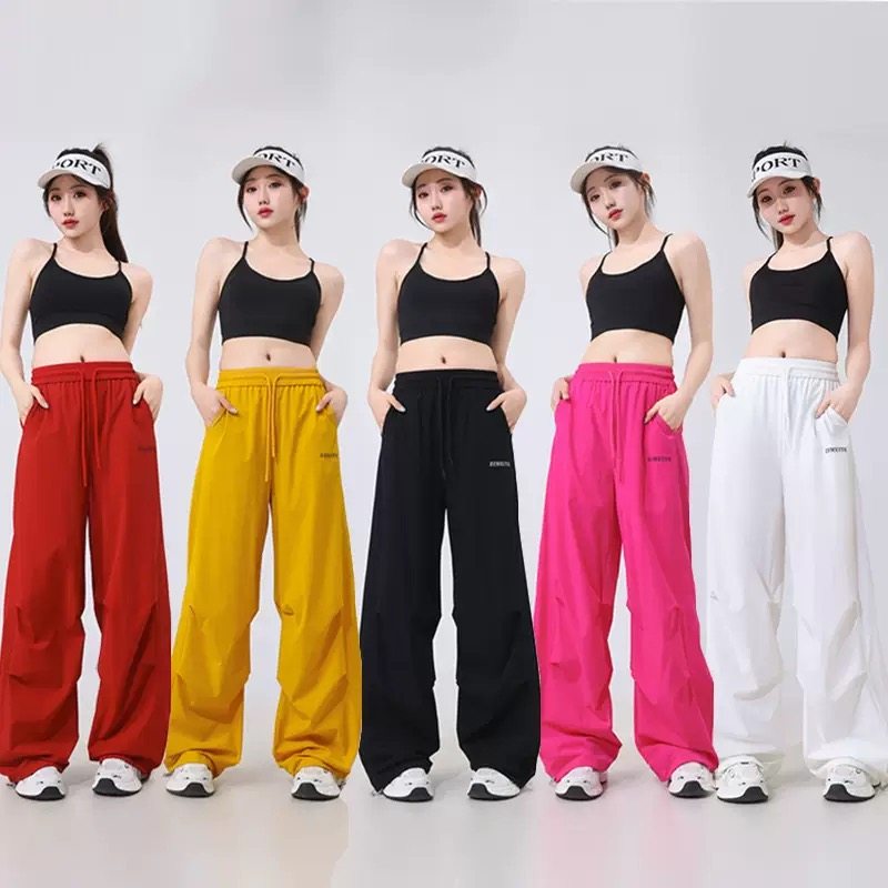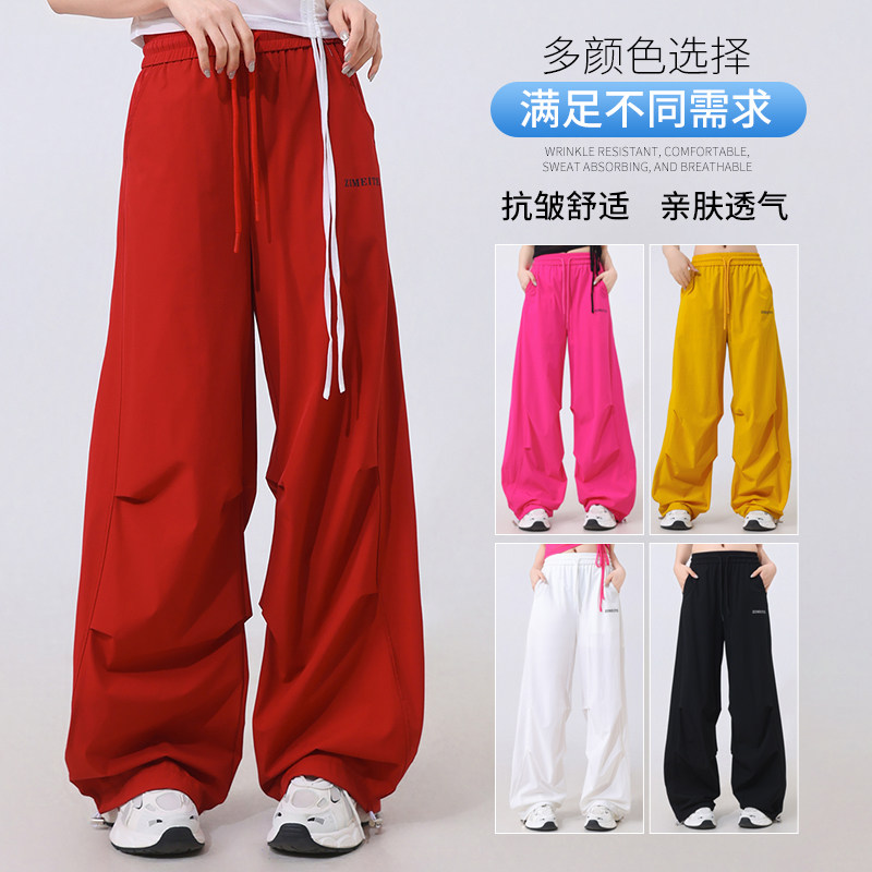2025新款广场舞爵士舞裤子速干运动裤白色裤子女夏薄款跳舞伞兵裤