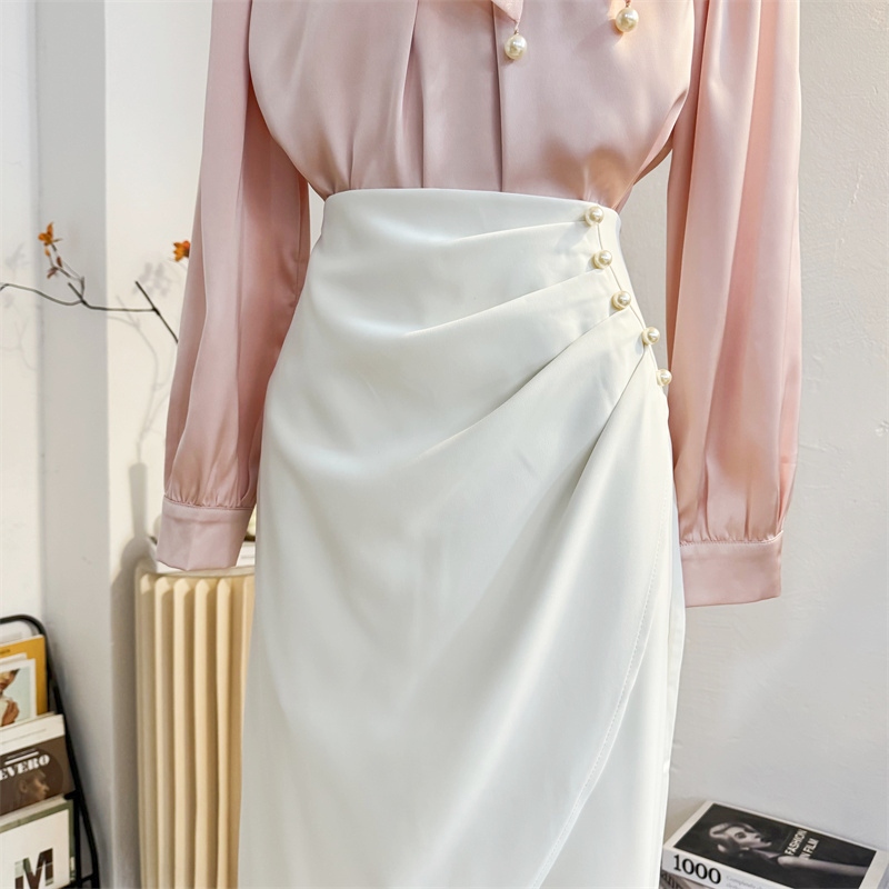 褶皱设计感不规则开叉半身裙女中长款2025春夏季高腰包臀气质裙子