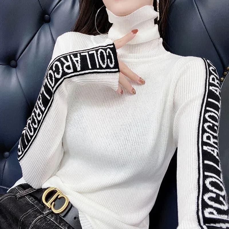 欧洲站洋气字母针织打底衫女春冬2025新款修身显瘦堆堆领橘色毛衣