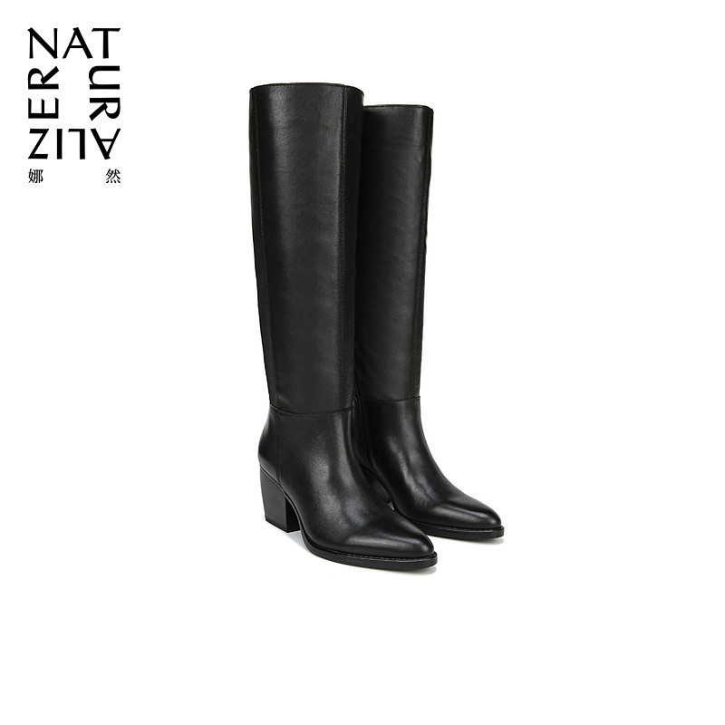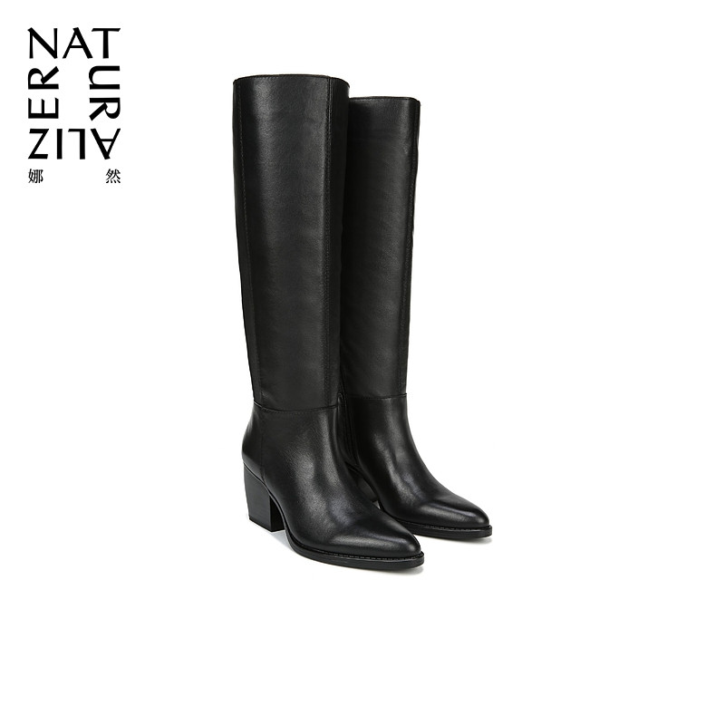 Naturalizer娜然冬款黑色保暖粗跟高跟拉链女式长筒靴骑士靴FAE