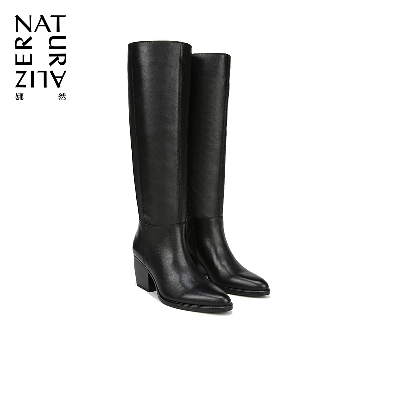 Naturalizer娜然粗跟高跟拉链女式长筒靴骑士靴FAE