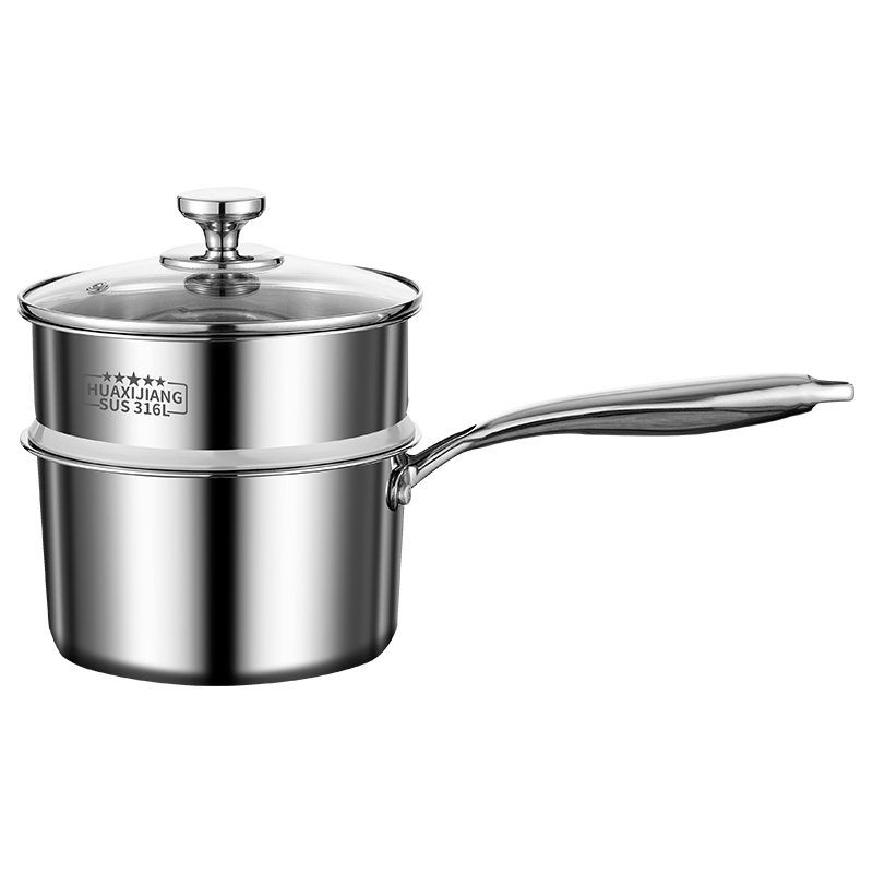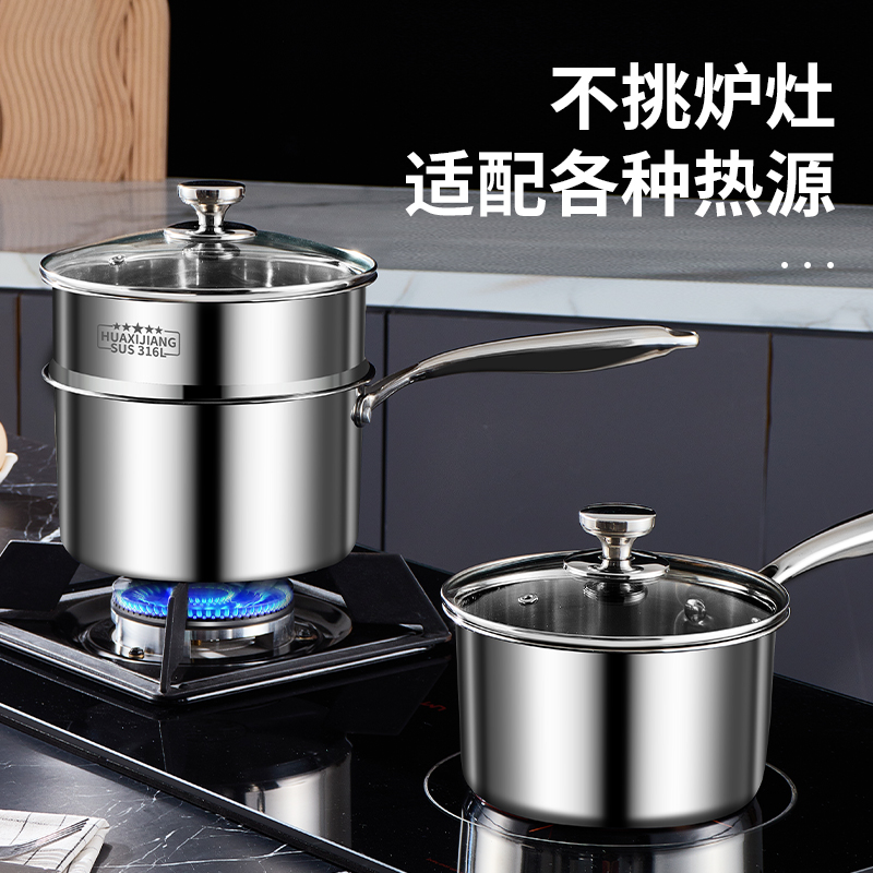316不锈钢奶锅宝宝婴儿辅食加厚汤锅蒸煮一体热奶牛奶家用泡面锅