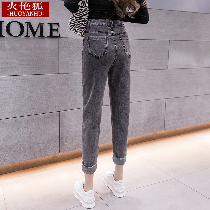 弹力牛仔裤女烟灰色宽松大码萝卜