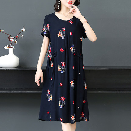 2025新款妈妈夏装短袖连衣裙洋气大码遮肚显瘦中老年女装宽松裙子