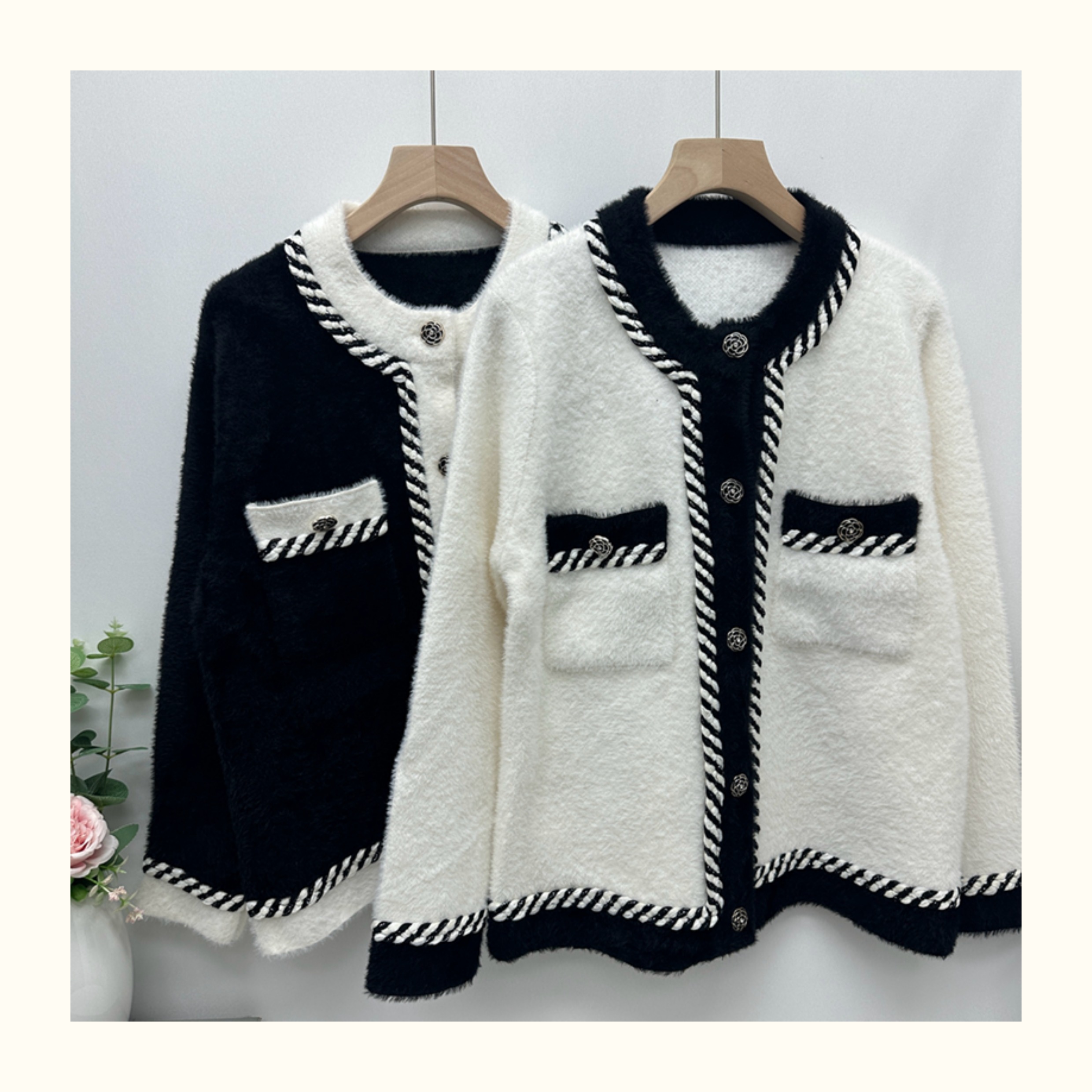 法式时尚香风外套2025秋冬新款水貂针织开衫宽松洋气上衣减龄外穿