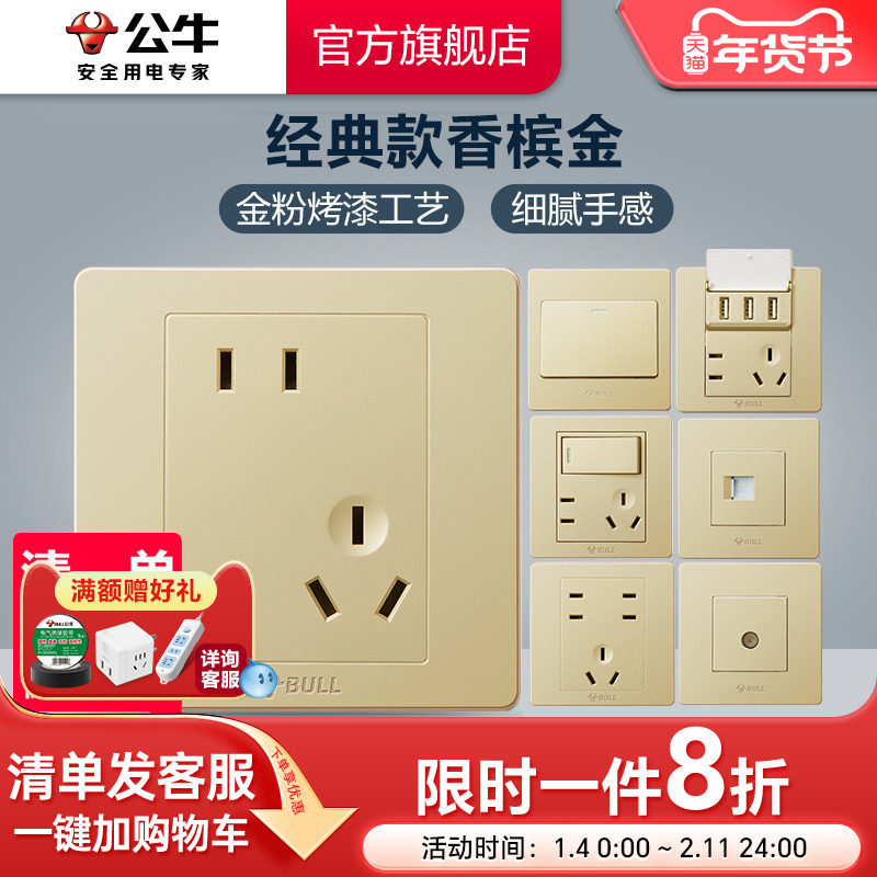 公牛开关插座五孔暗装家用金