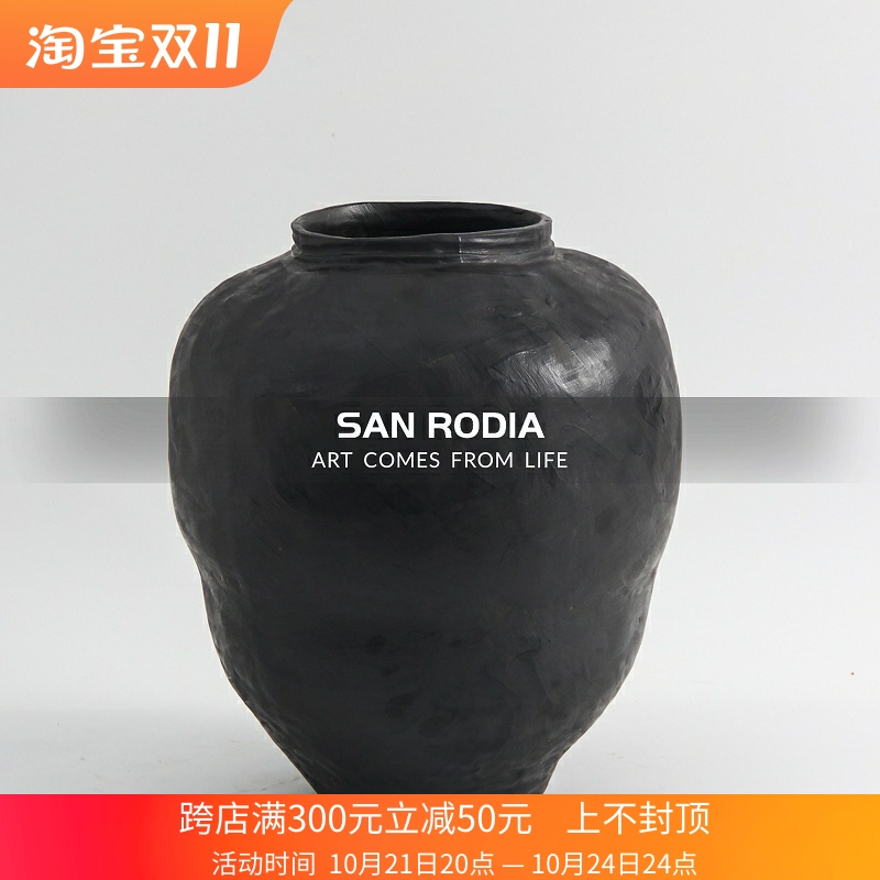 新中式侘寂风怀旧黑色陶瓷大花瓶陶罐样板间民宿茶室桌面插花器