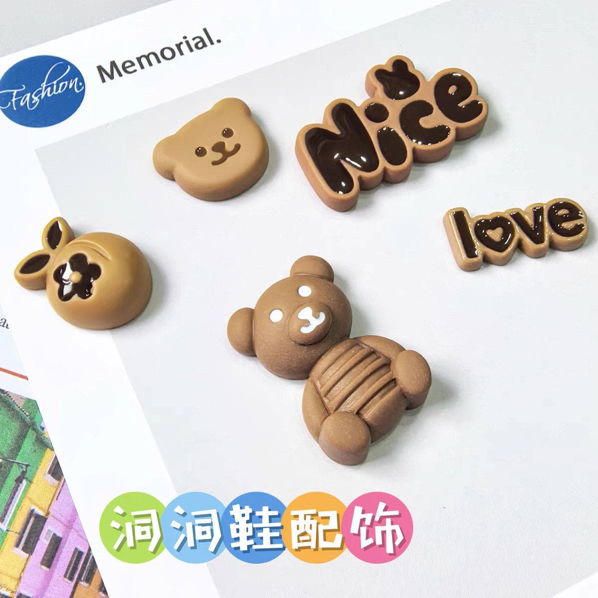勃肯鞋配饰-可爱小熊果子鞋扣洞洞鞋配饰DIY装饰扣棕色小怪兽鞋花