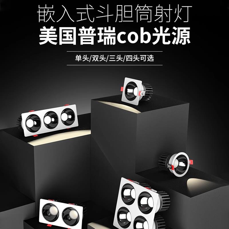 防眩光led双头筒灯嵌入式方形射灯客厅过道玄关家用cob双头斗胆灯