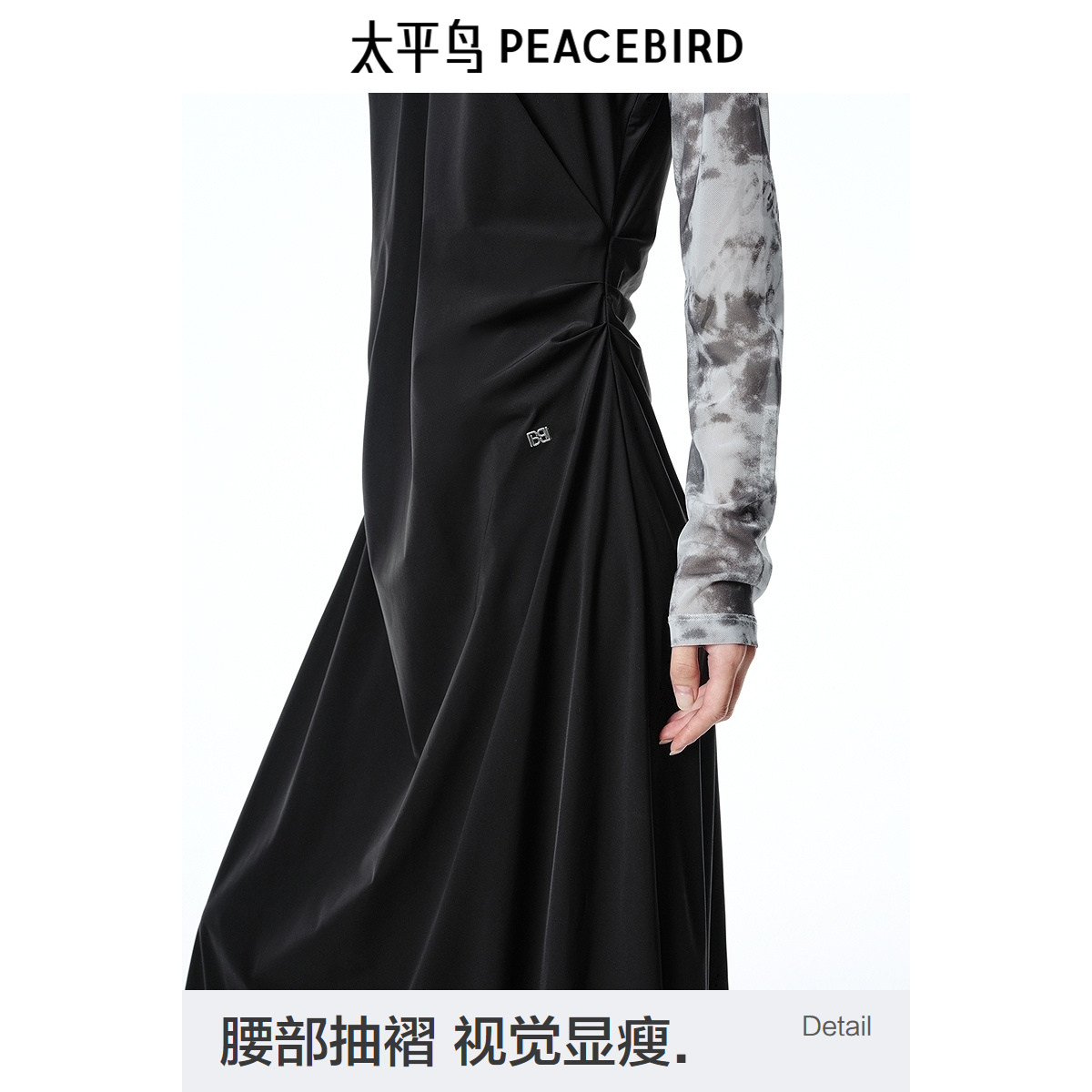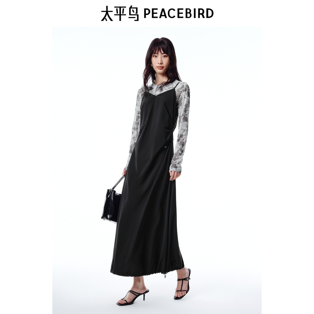 太平鸟女装夏季腰部抽褶X型吊带连衣裙可拆卸两件套女A3FAF2455