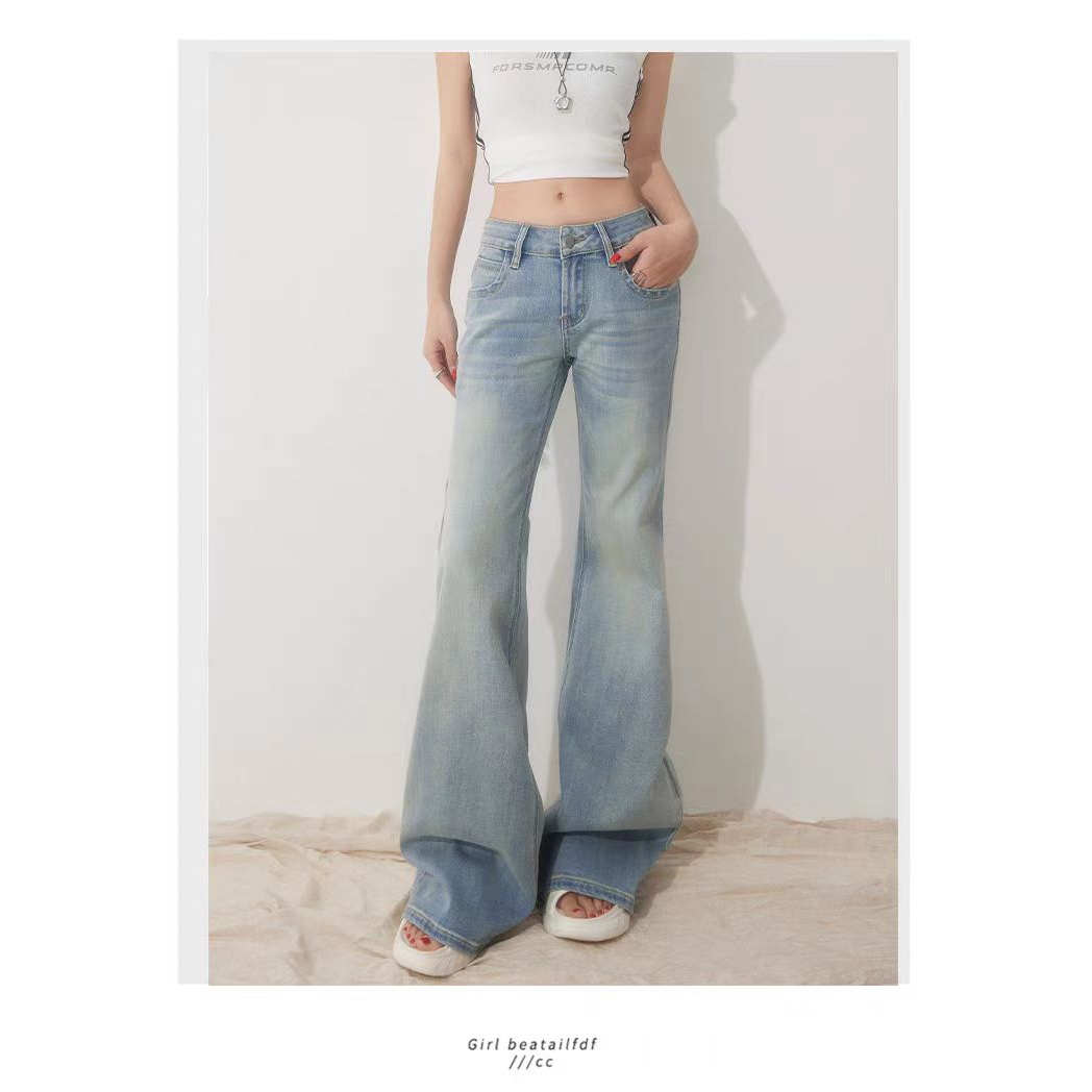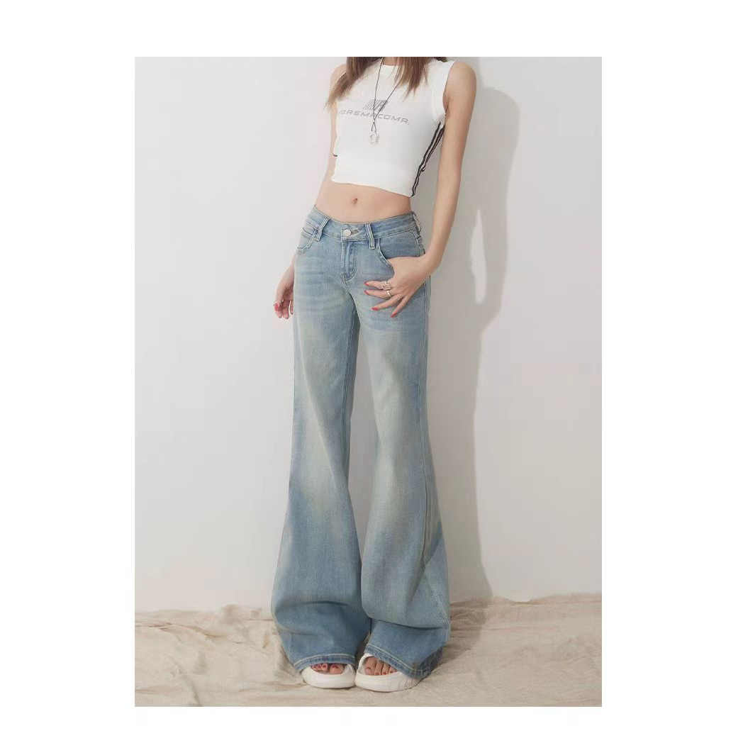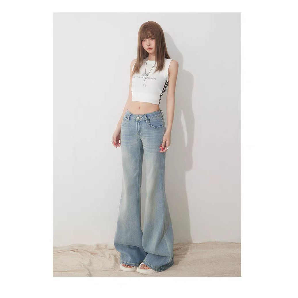 春夏款冰蓝色微喇阔腿拖地牛仔裤