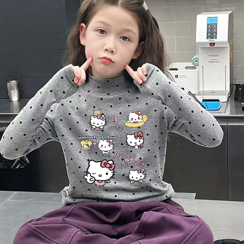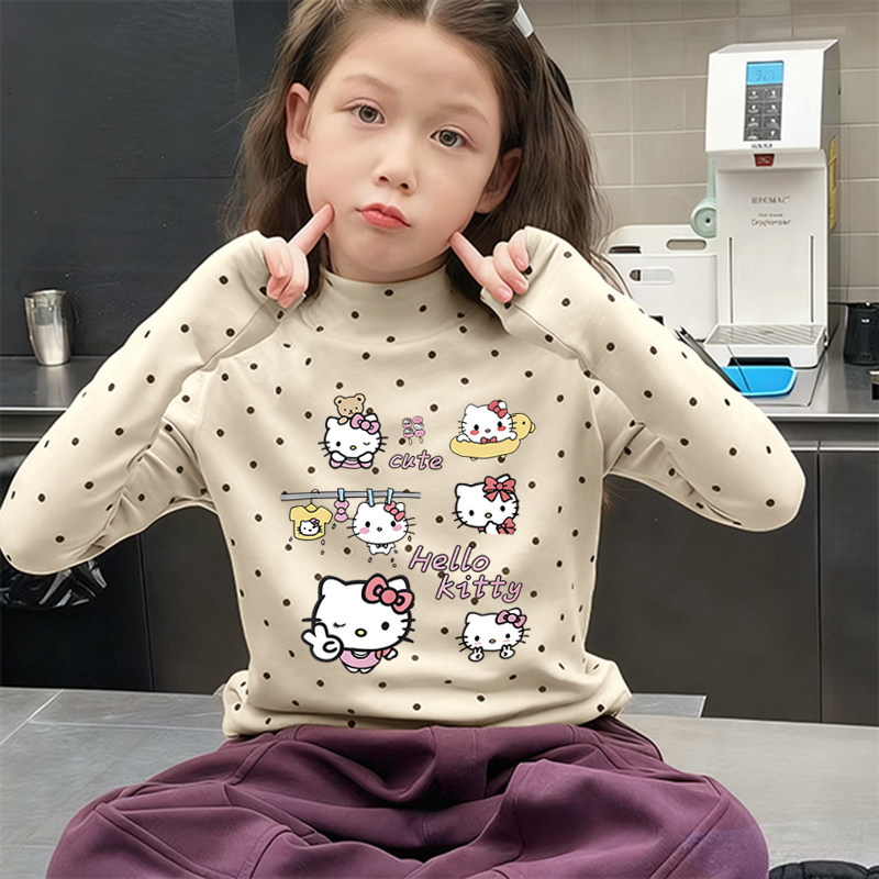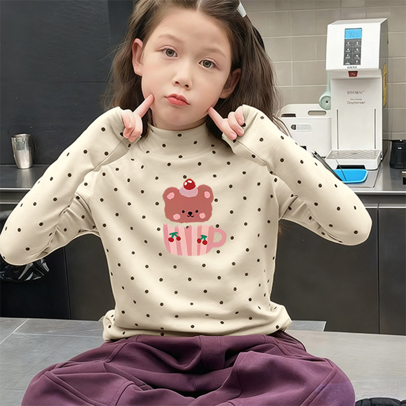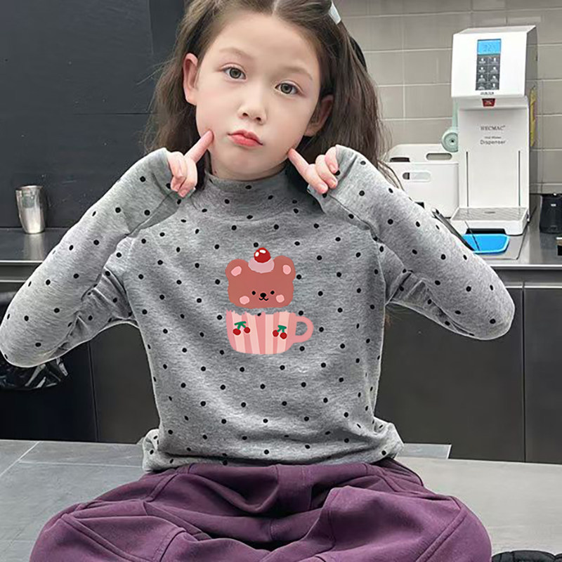 德绒女童半高领长袖T恤秋冬季新款中大儿童宝宝韩版印花打底上衣