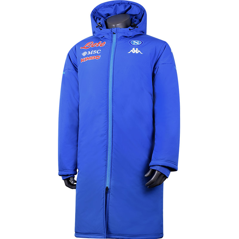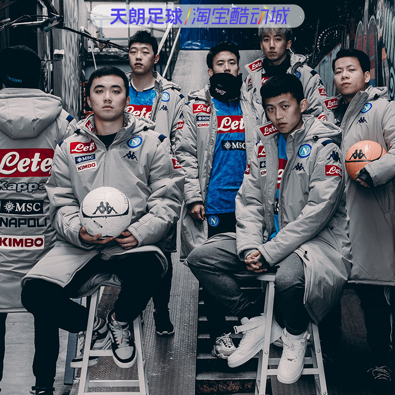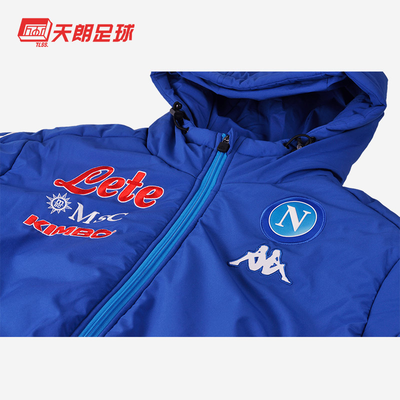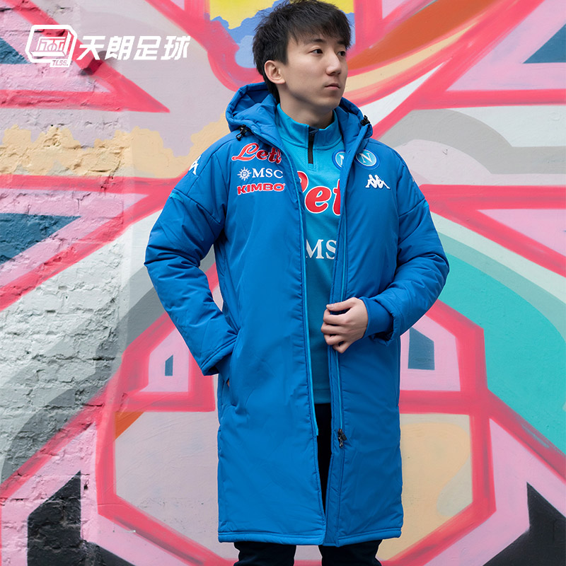 天朗足球Kappa那不勒斯长款球员版加绒保暖连帽棉服男31123XW-A0K
