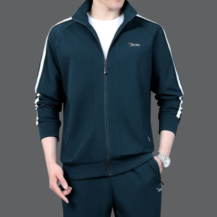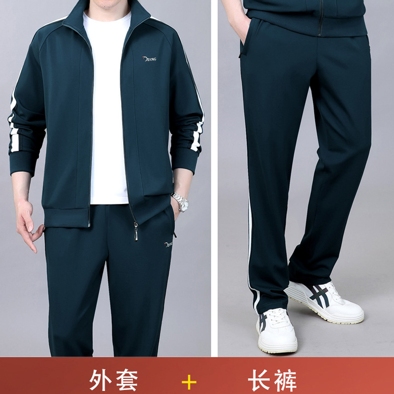 春秋新款运动套装男中年休闲运动衣大码开衫长袖卫衣两件套爸爸装