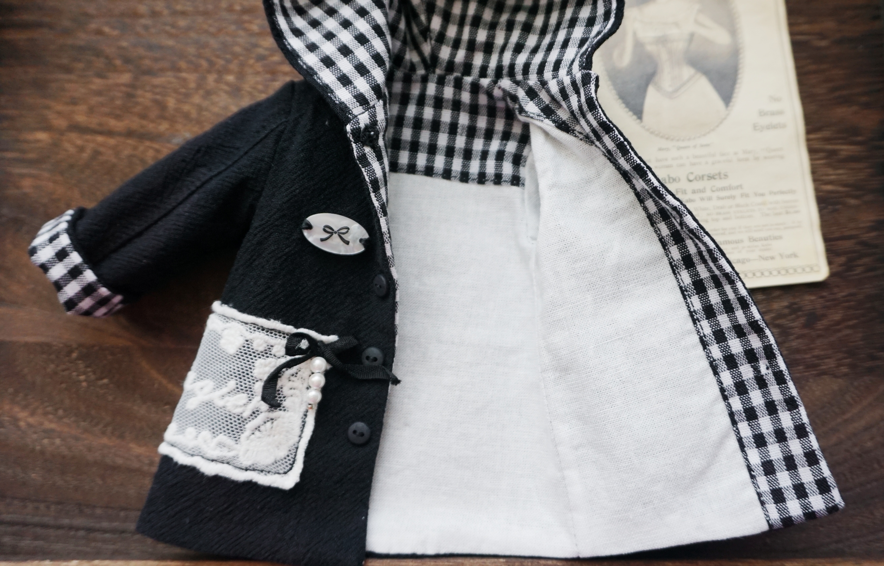 迷路的猫手作bjd娃娃衣1/6分娃衣30厘米娃娃蕾丝格子大衣外套