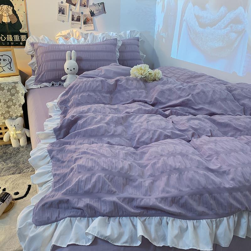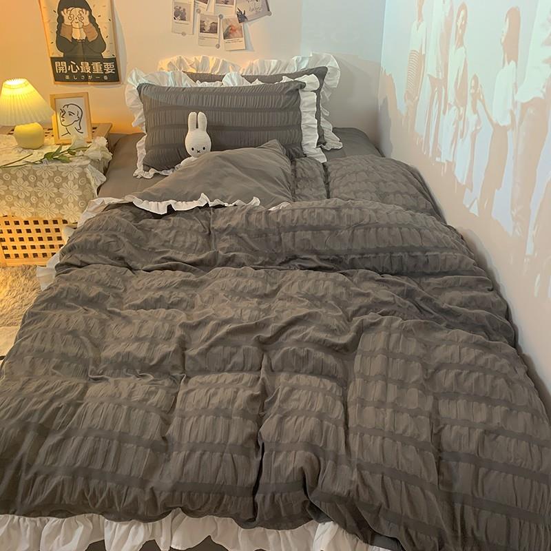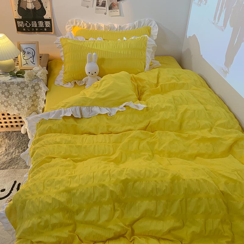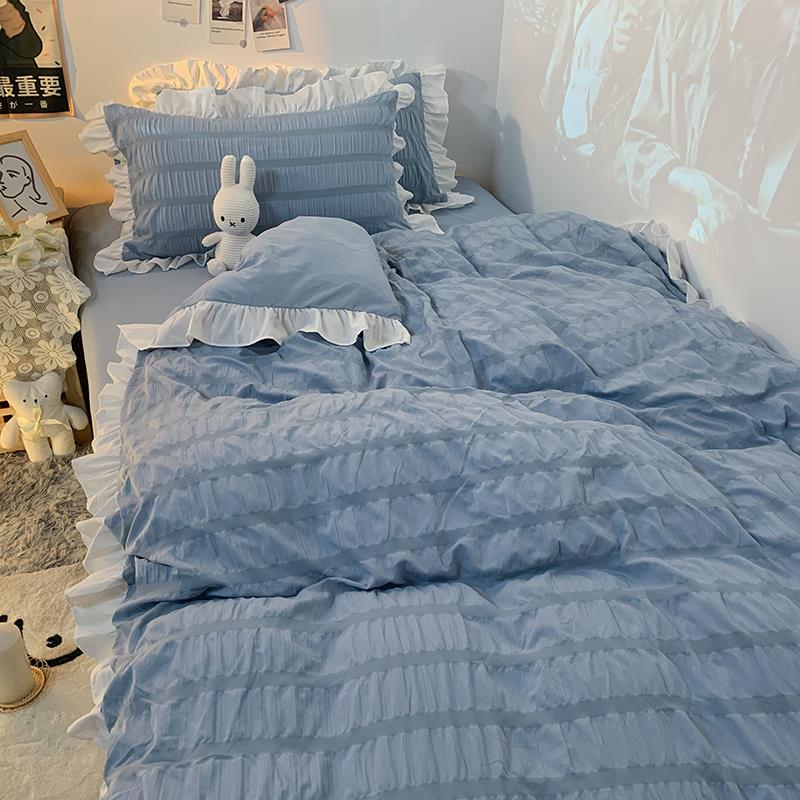新款in泡s公主风袖粉色床单被套床裙三件套宿学生舍床上用品四件