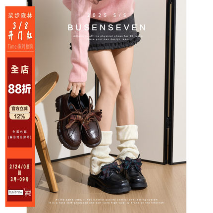 柒步森林牛皮蝴蝶结系带小皮鞋学院风厚底单鞋子女春秋季2026新款