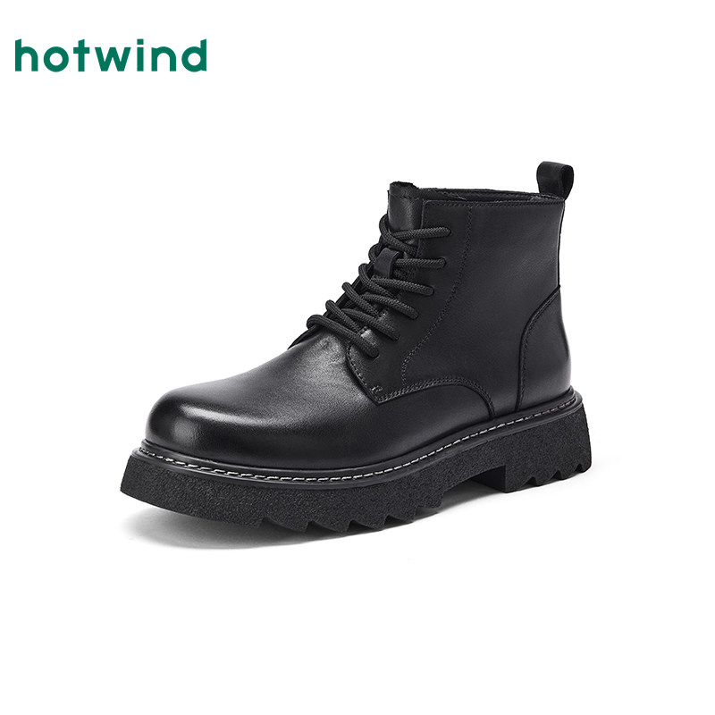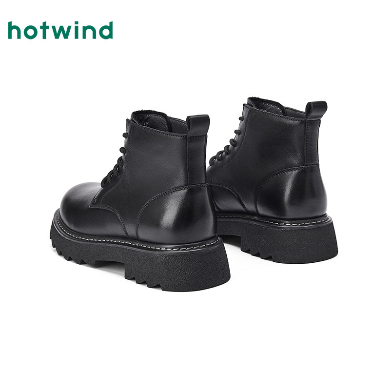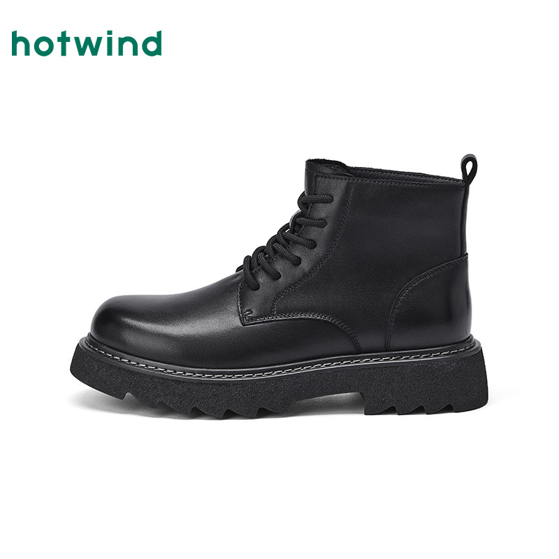热风男鞋2025年冬季新款黑色马丁靴增高工装靴休闲靴子通勤皮鞋子