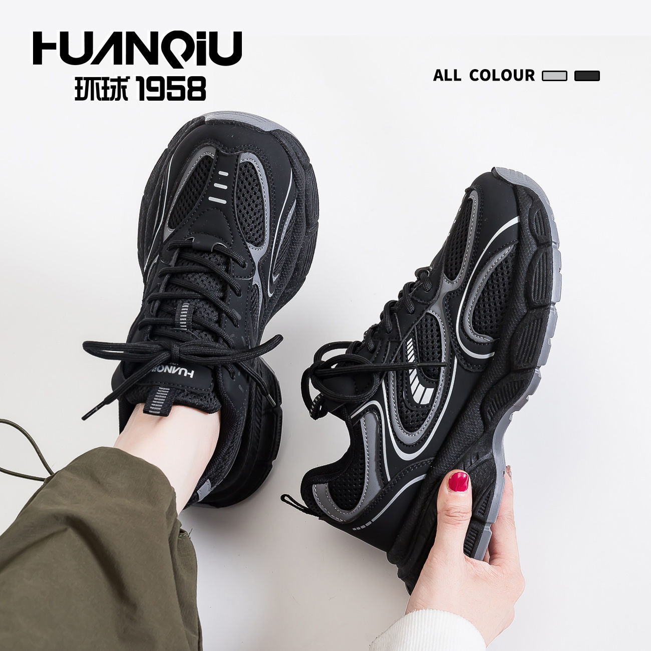 环球厚底黑色老爹鞋女款2025新款秋季超好看休闲百搭运动小黑鞋子