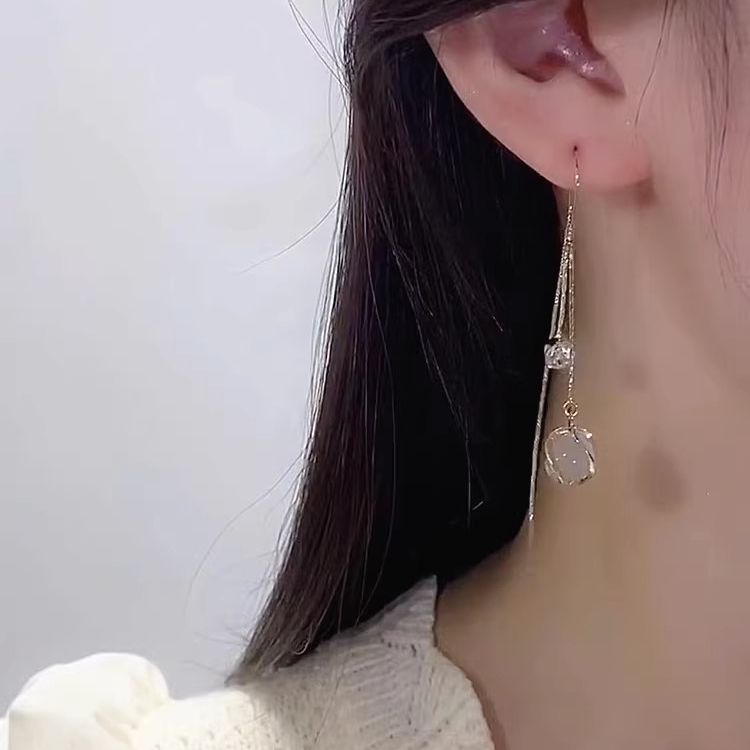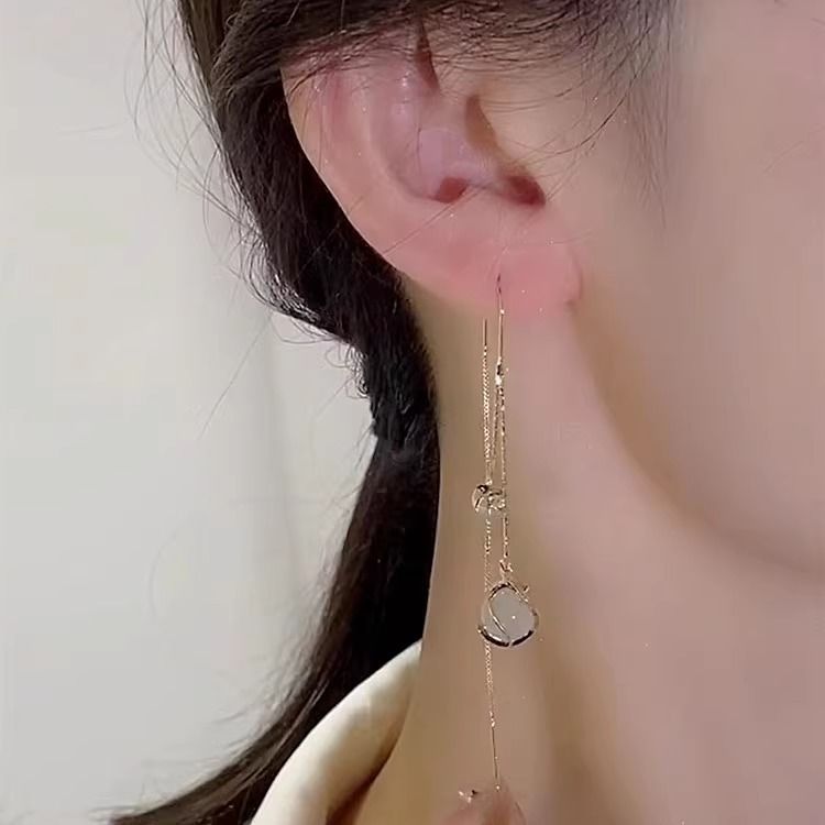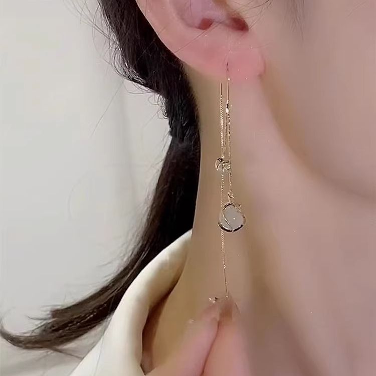 纯银耳线时尚猫眼石耳环流苏超仙长款圆脸新款气质轻奢小众耳饰女