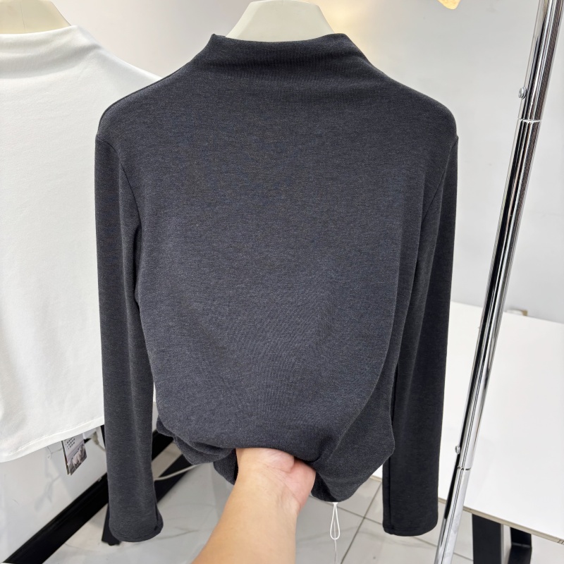 慕斯羊绒拉绒半高领打底衫25秋冬款内搭修身显瘦设计感长袖T恤女