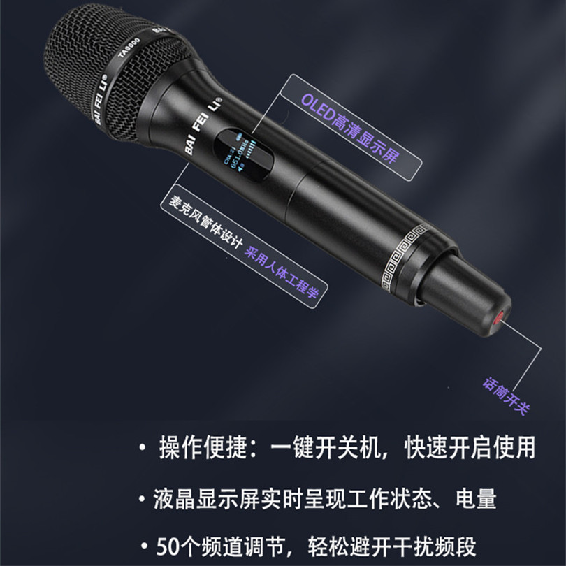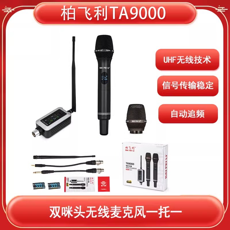 柏飞利 TA9000电容动圈双咪头无线真分级麦克风唱歌演出舞台直播