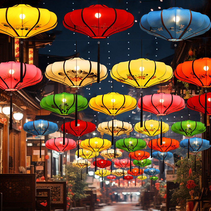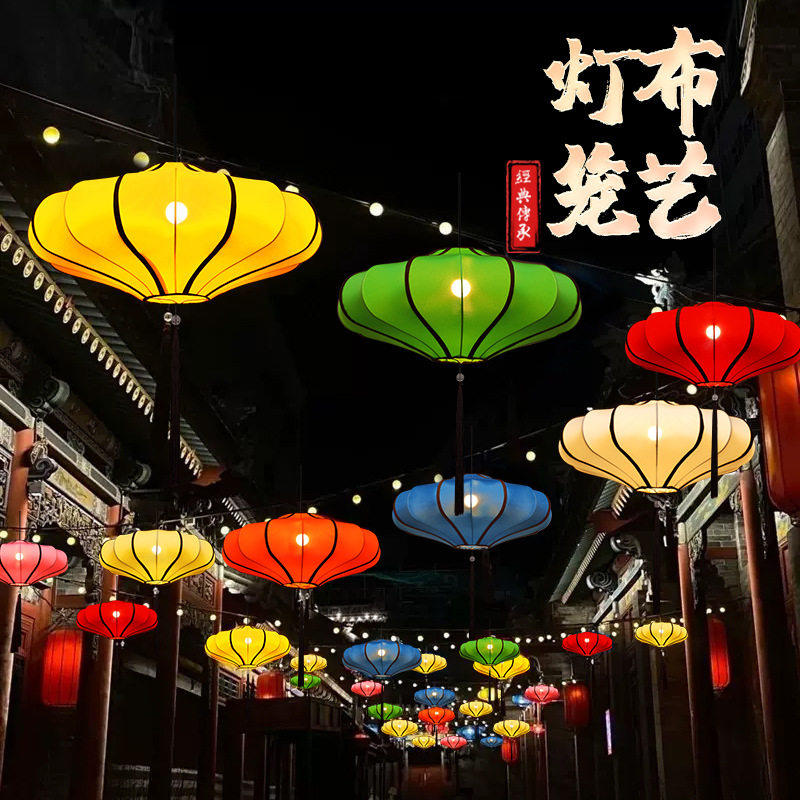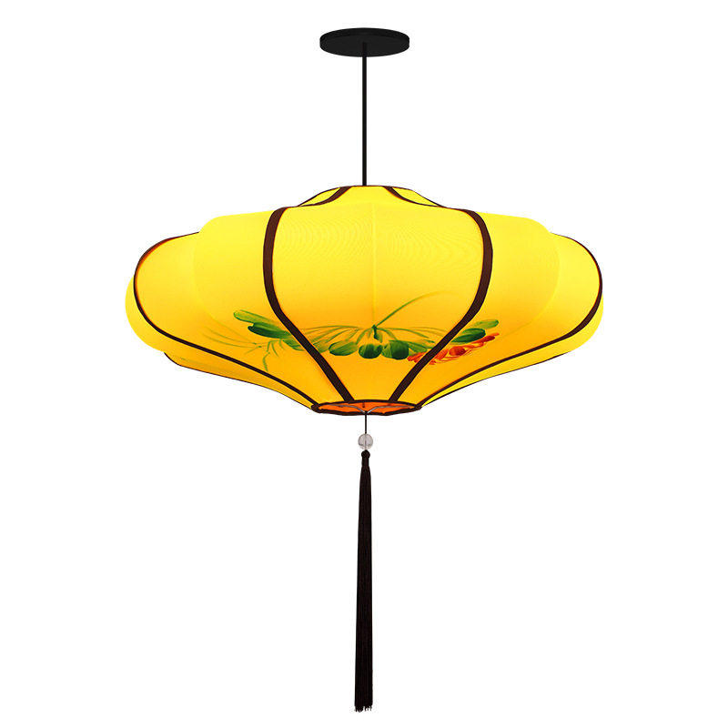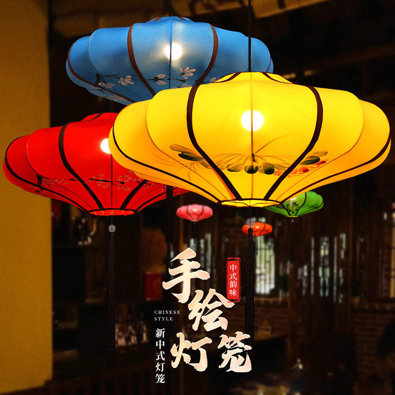 中式飞碟布艺吊灯开业酒店手绘国画古典灯具中国风仿古手绘红灯笼