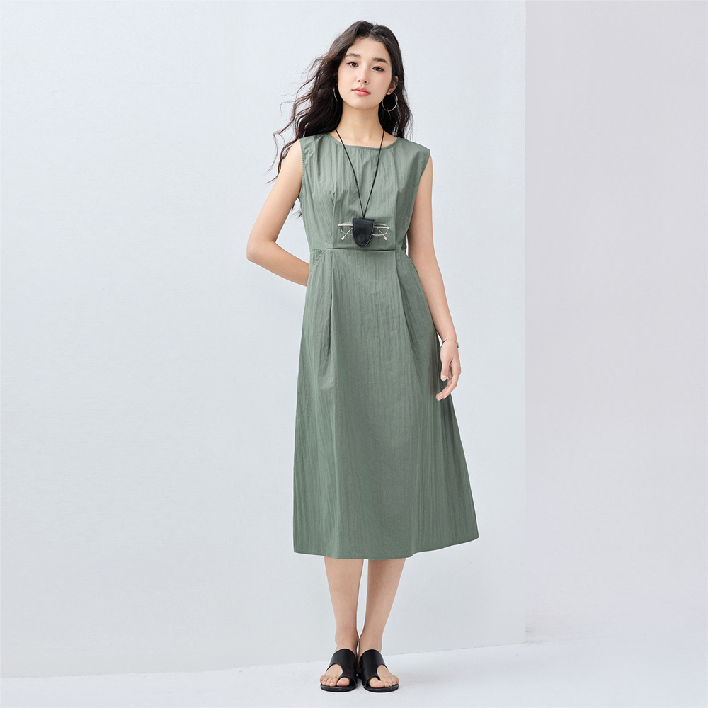 佐丹奴背心裙女夏季新款纯色简约压褶收腰圆领无袖连衣裙13465343