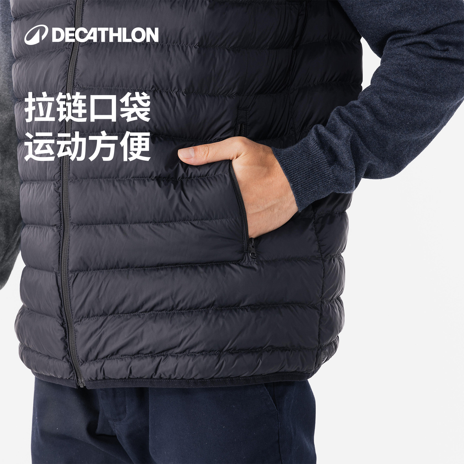 迪卡侬MW500户外马甲男士运动马甲聚酯内胆跑步背心男女马夹SAG1
