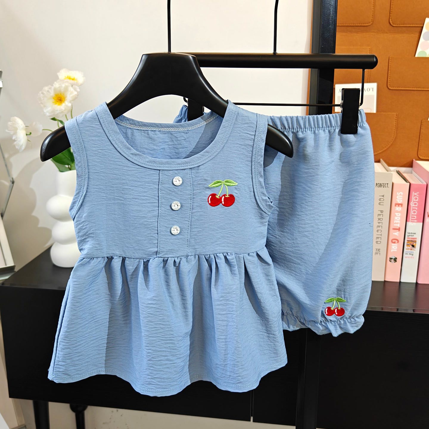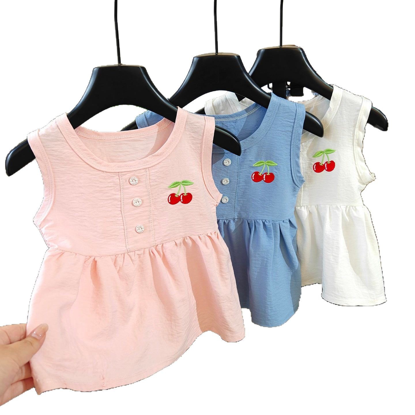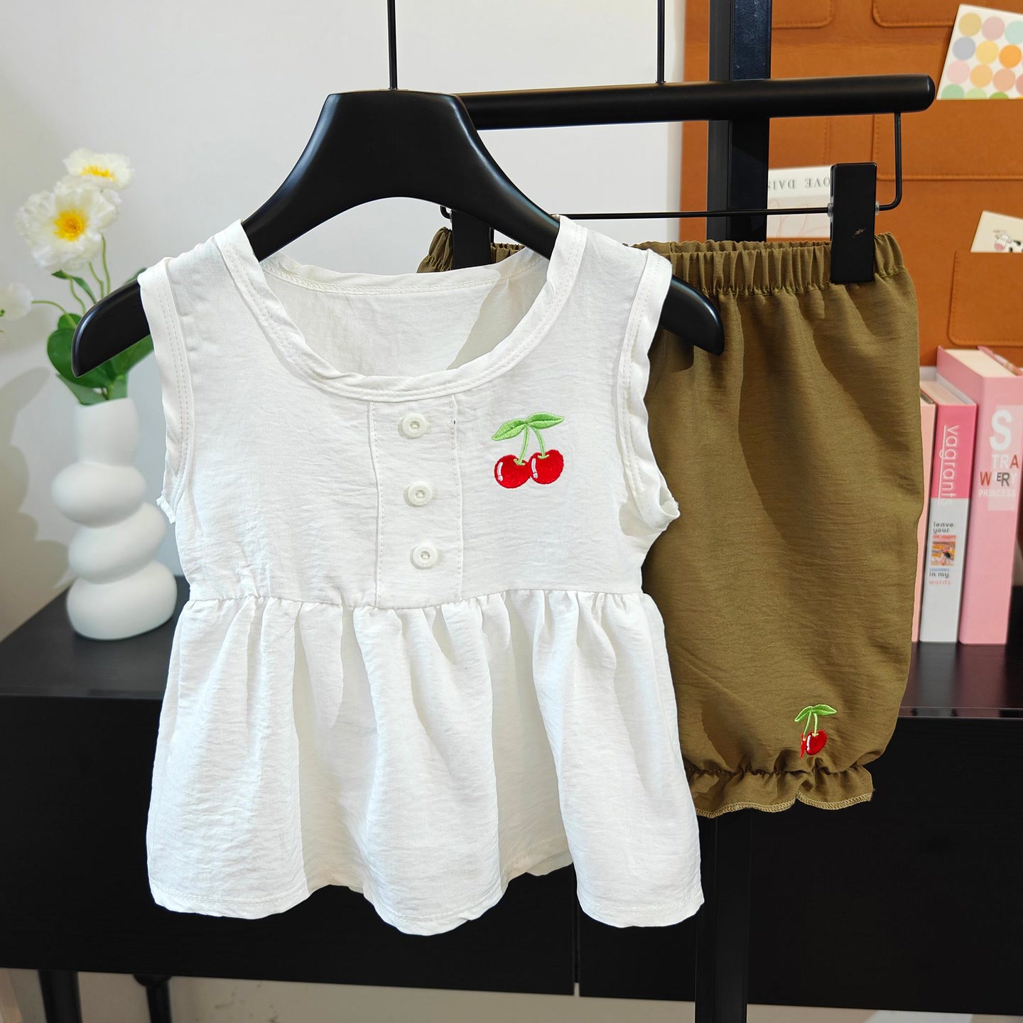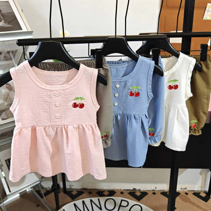 婴儿t恤裙花边裤夏季女宝宝吊带背心女童无袖外穿洋气半身裙套装