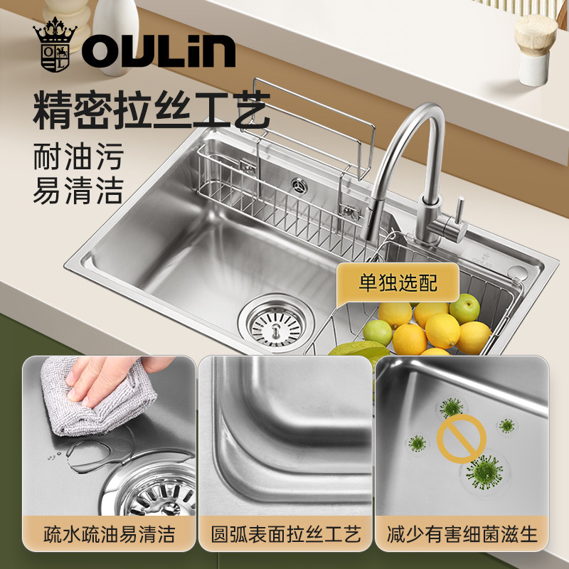 【活动】欧琳水槽 304不锈钢厨房大单槽家用收纳洗菜盆洗碗槽家用