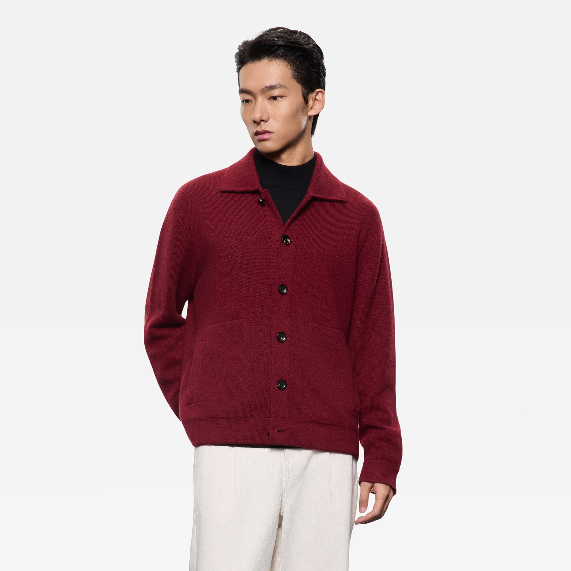 【新年系列】ERDOS 男装小翻领红色羊绒开衫25年秋冬新品厚款外套