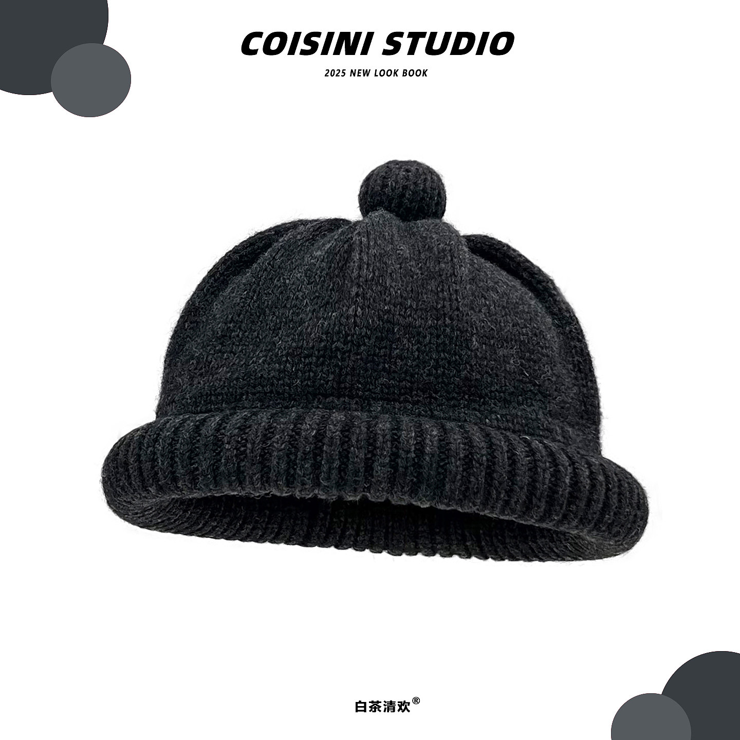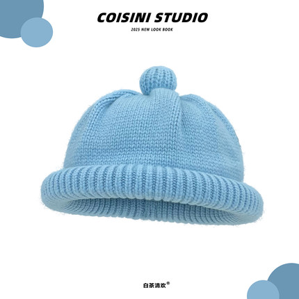 2025新款日系可爱圆顶羊毛毛线帽子女秋冬保暖百搭卷边针织渔夫帽