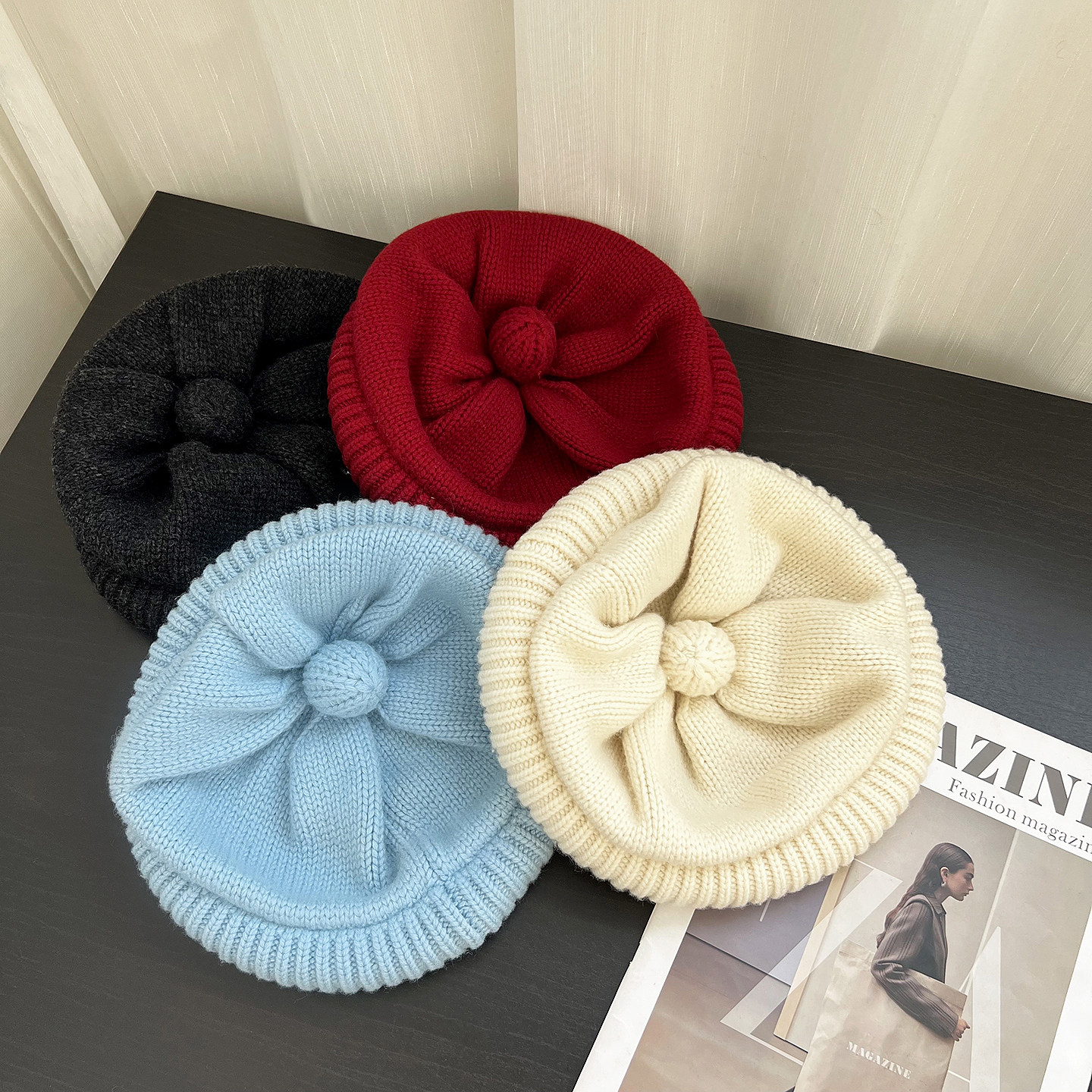 日系可爱圆顶羊毛毛线帽子女秋冬