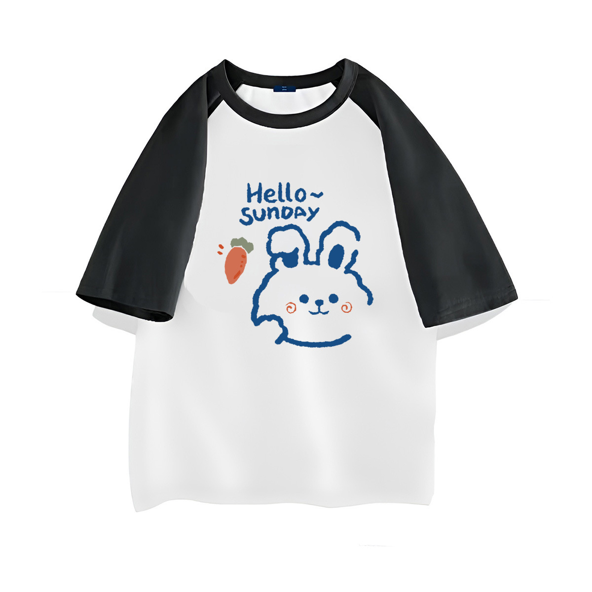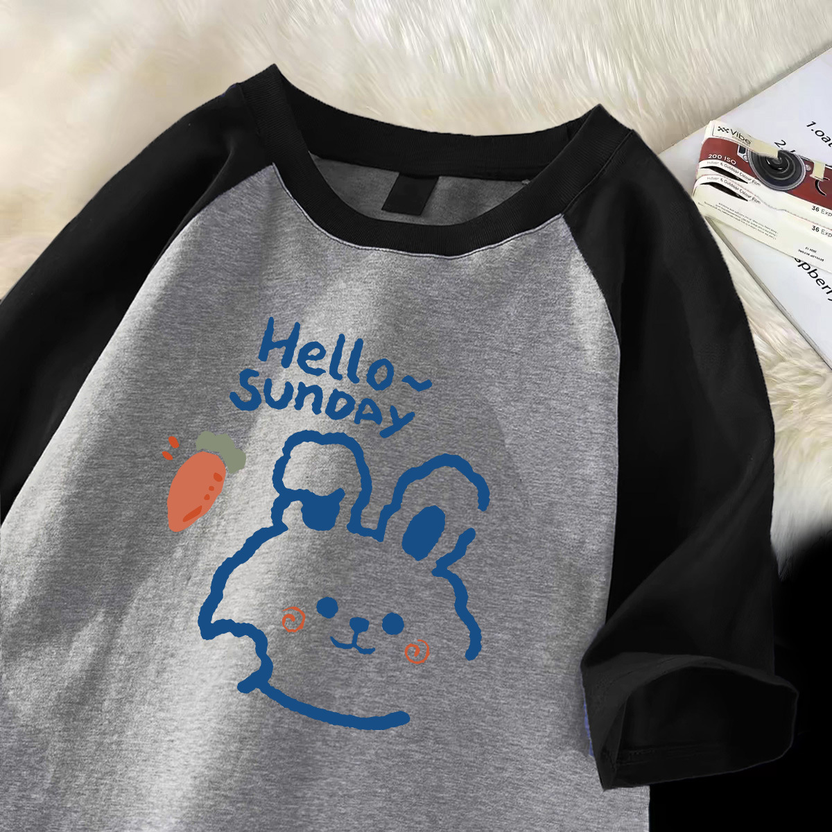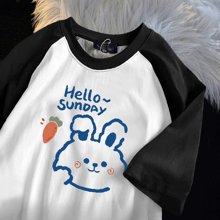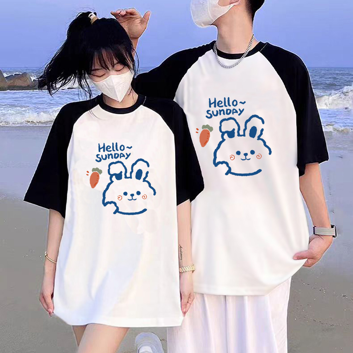 纯棉拼色短袖t恤女透气夏季落肩休闲男女同款上衣个性大学生体恤