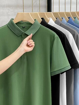 翻领t恤男夏季商务男装衣服纯色高端Polo衫男士冰丝短袖新款潮流