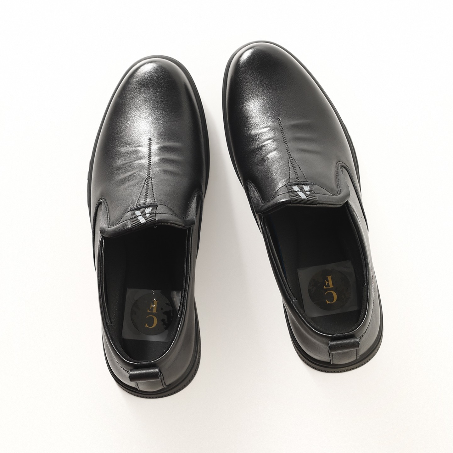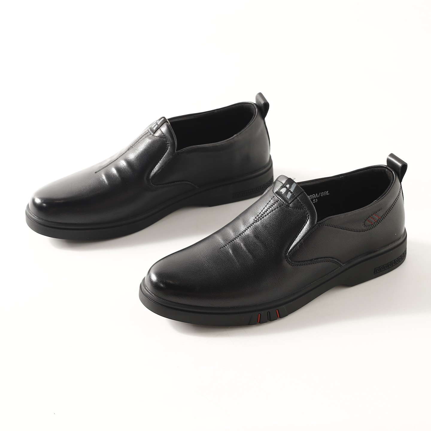 【H撤柜】新款男士质感头层牛皮一脚蹬休闲牛皮鞋黑色商务套脚鞋