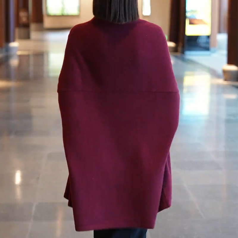 高级感羊毛酒红色披肩女外搭